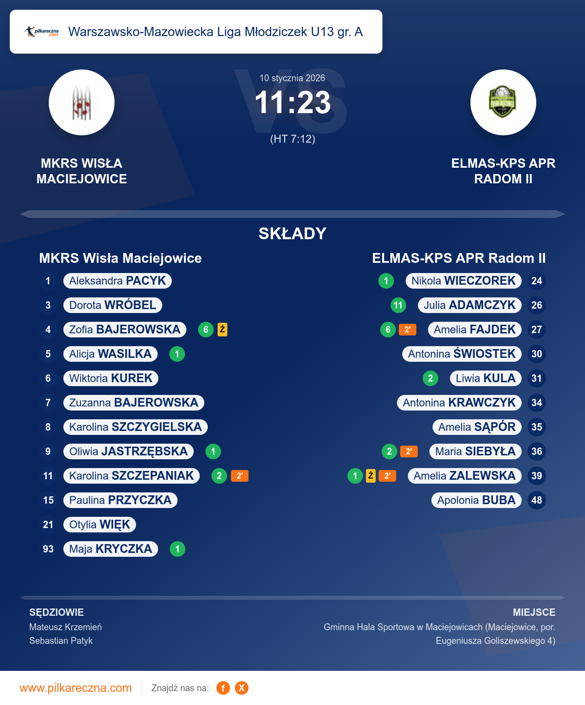 Zawodnicy: Julia Adamczyk (11), Amelia Fajdek (6), Liwia Kula (2), Maria Siebyła (2), Amelia Zalewska (1), Nikola Wieczorek (1), Amelia Sąpór, Antonina Krawczyk, Antonina Świostek