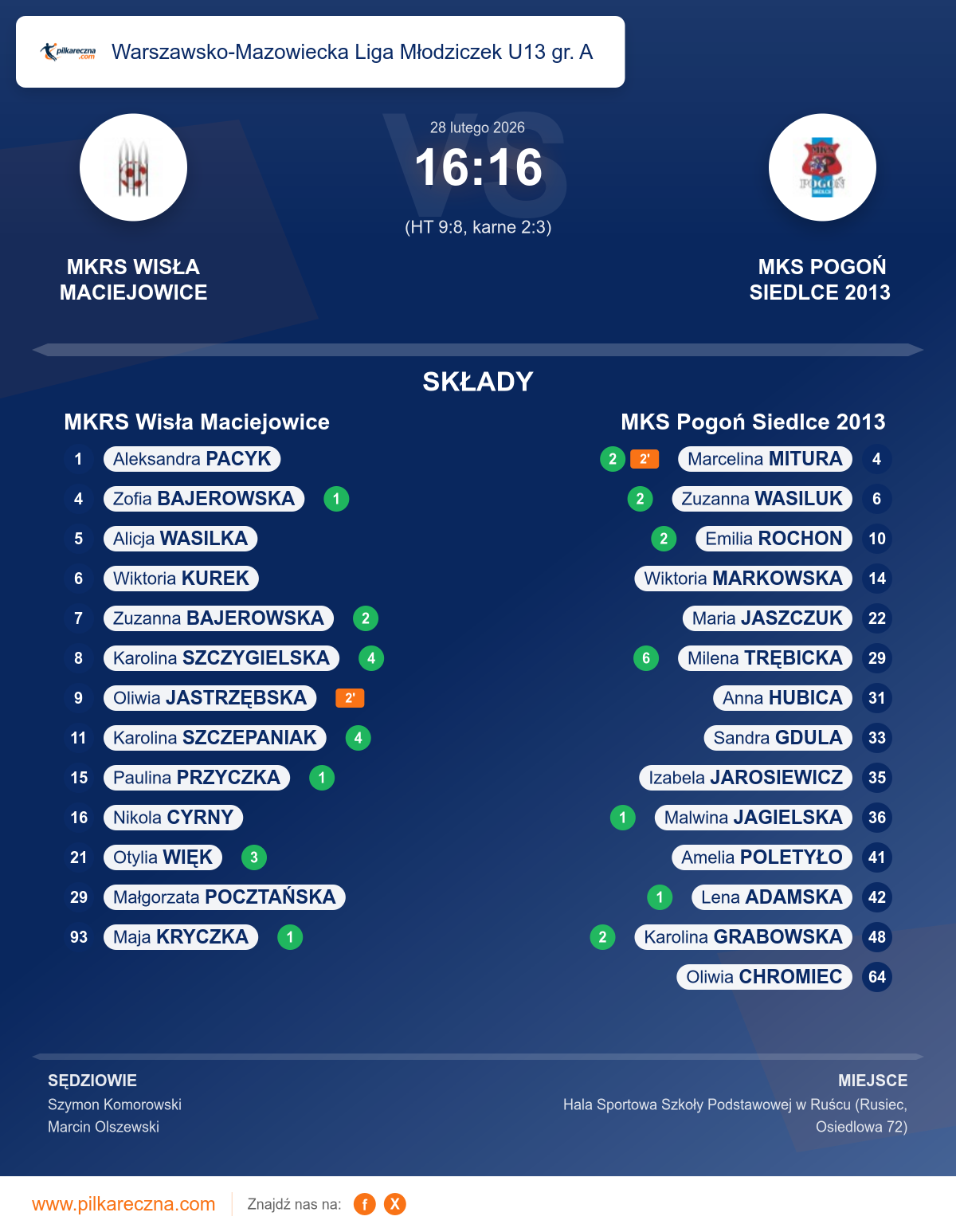 MKRS Wisła Maciejowice 16–16 MKS Pogoń Siedlce 2013