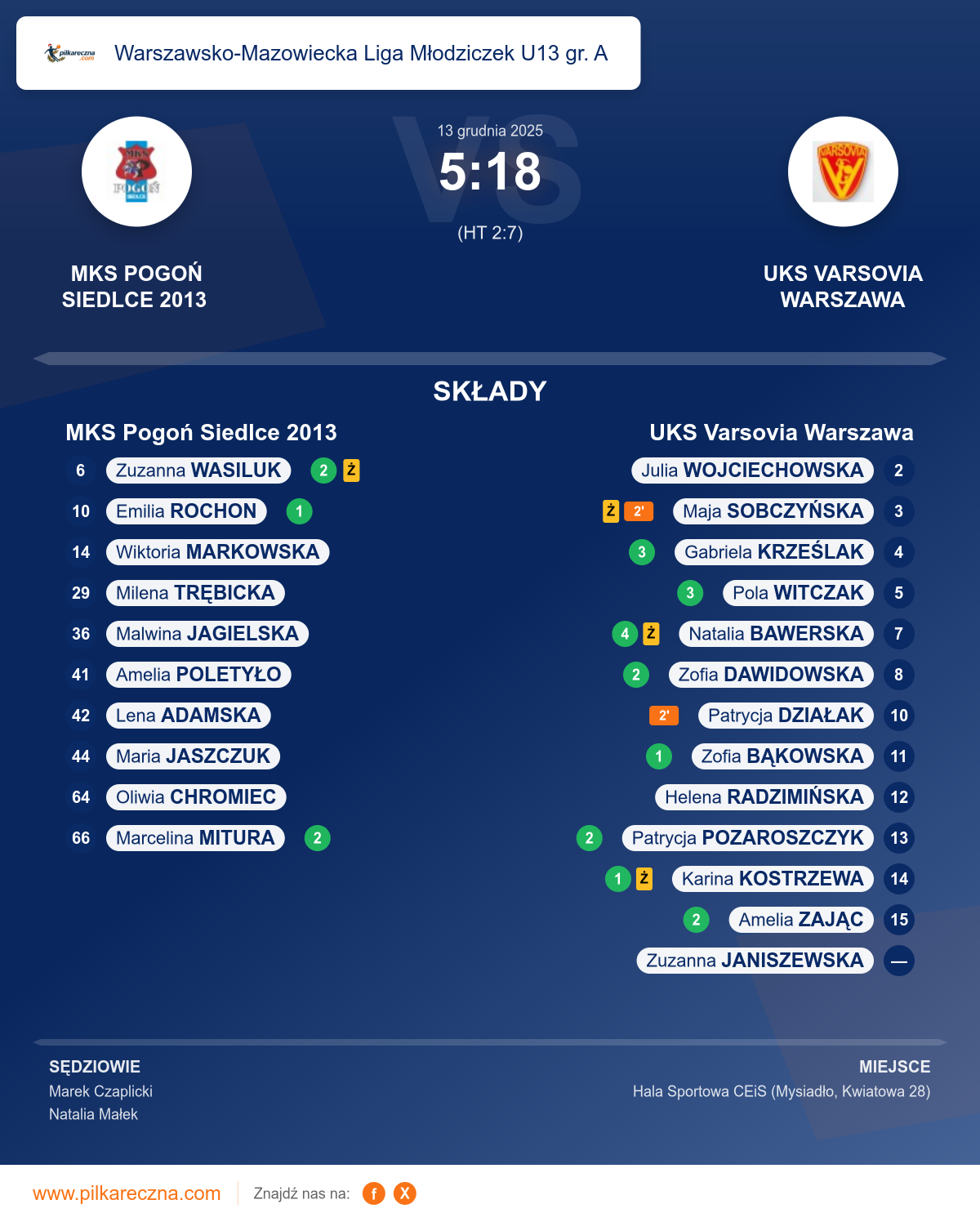 MKS Pogoń Siedlce 2013 5–18 UKS Varsovia Warszawa