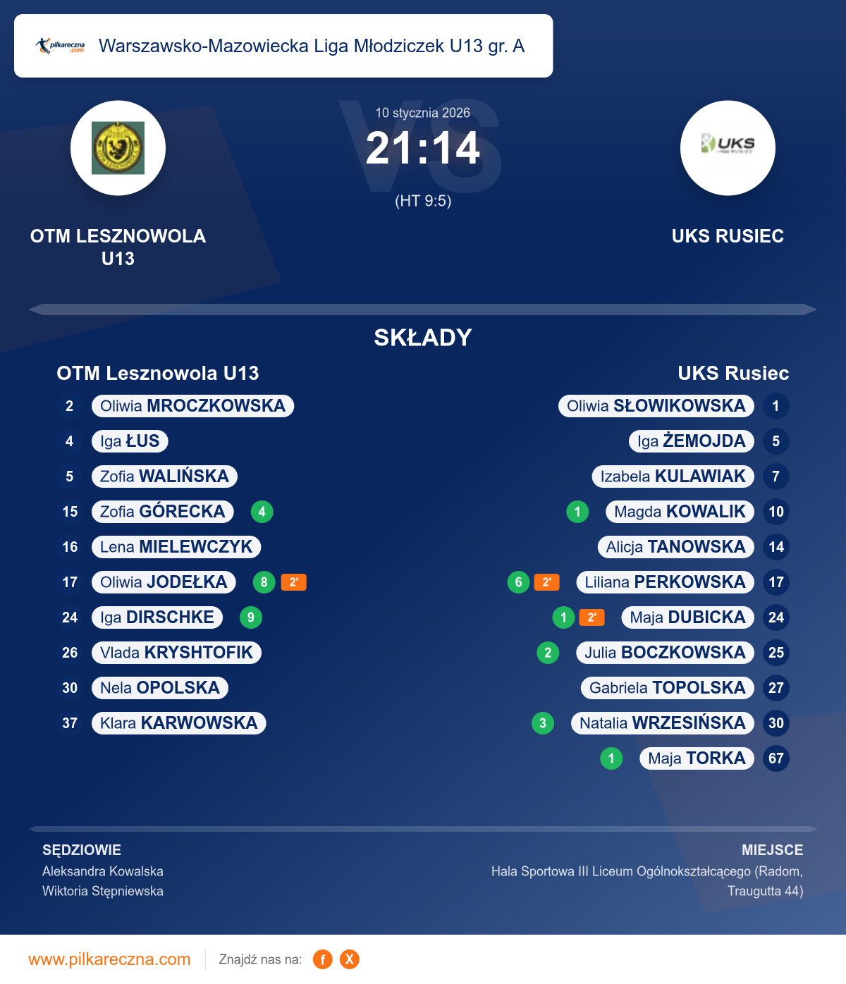 OTM Lesznowola U13 21–14 UKS Rusiec