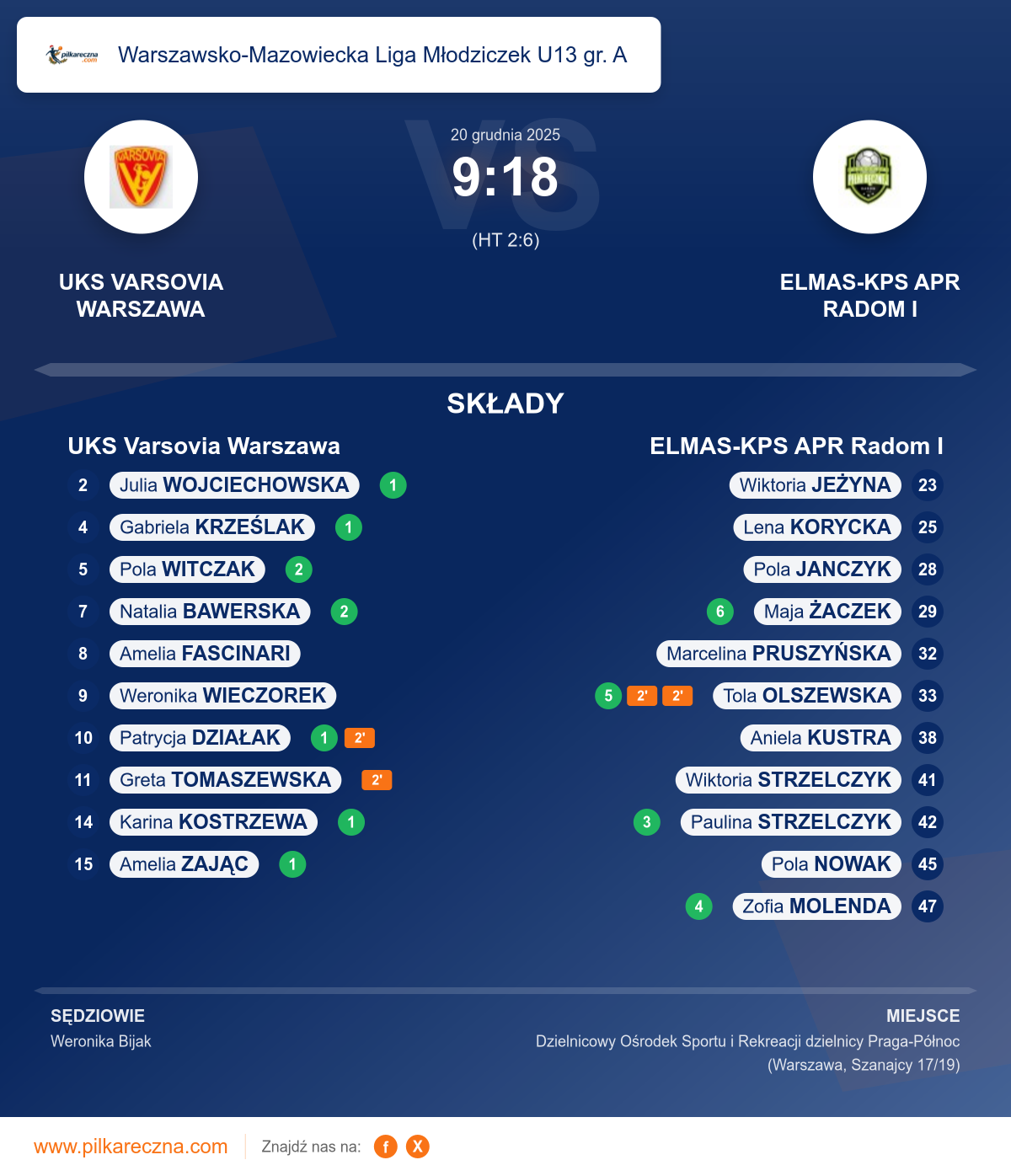 Zawodnicy: Natalia Bawerska (2), Pola Witczak (2), Amelia Zając (1), Gabriela Krześlak (1), Julia Wojciechowska (1), Karina Kostrzewa (1), Patrycja Działak (1), Amelia Fascinari, Greta Tomaszewska, Weronika Wieczorek