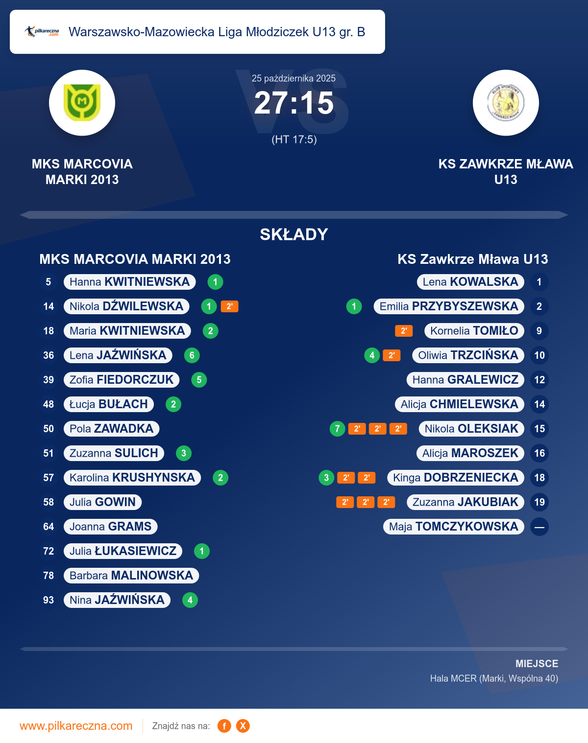 MKS MARCOVIA MARKI 2013 27–15 KS Zawkrze Mława U13