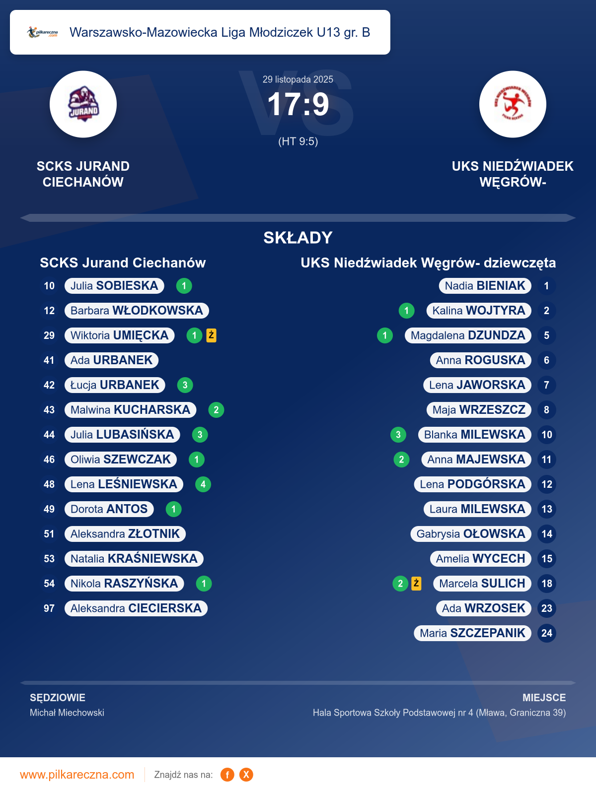 SCKS Jurand Ciechanów 17–9 UKS Niedźwiadek Węgrów- dziewczęta