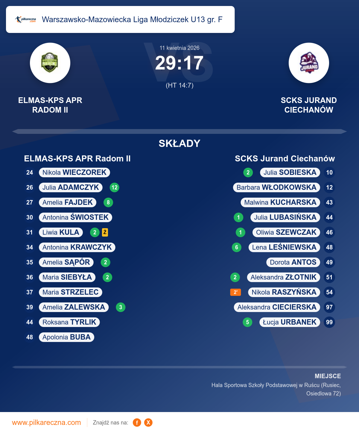 Zawodnicy: Julia Adamczyk (12), Amelia Fajdek (8), Amelia Zalewska (3), Amelia Sąpór (2), Liwia Kula (2), Maria Siebyła (2), Antonina Krawczyk, Antonina Świostek, Maria Strzelec, Nikola Wieczorek