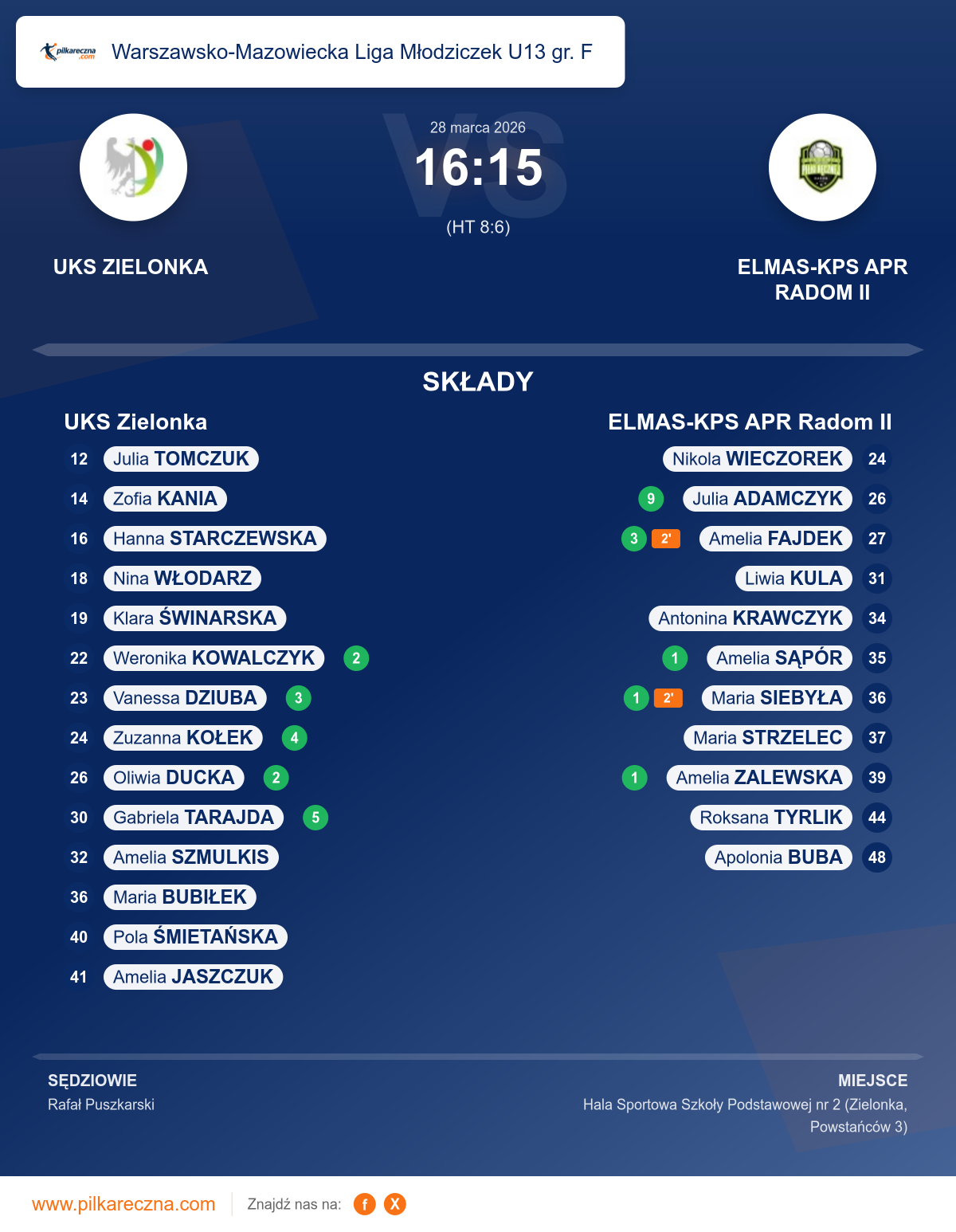 Zawodnicy: Gabriela Tarajda (5), Zuzanna Kołek (4), Vanessa Dziuba (3), Oliwia Ducka (2), Weronika Kowalczyk (2), Amelia Jaszczuk, Amelia Szmulkis, Klara Świnarska, Maria Bubiłek, Nina Włodarz, Pola Śmietańska, Zofia Kania
