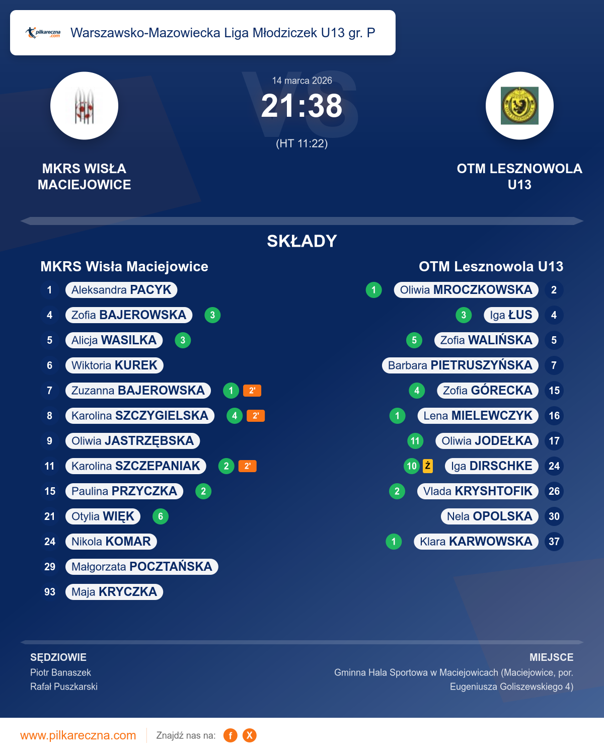 MKRS Wisła Maciejowice — OTM Lesznowola U13