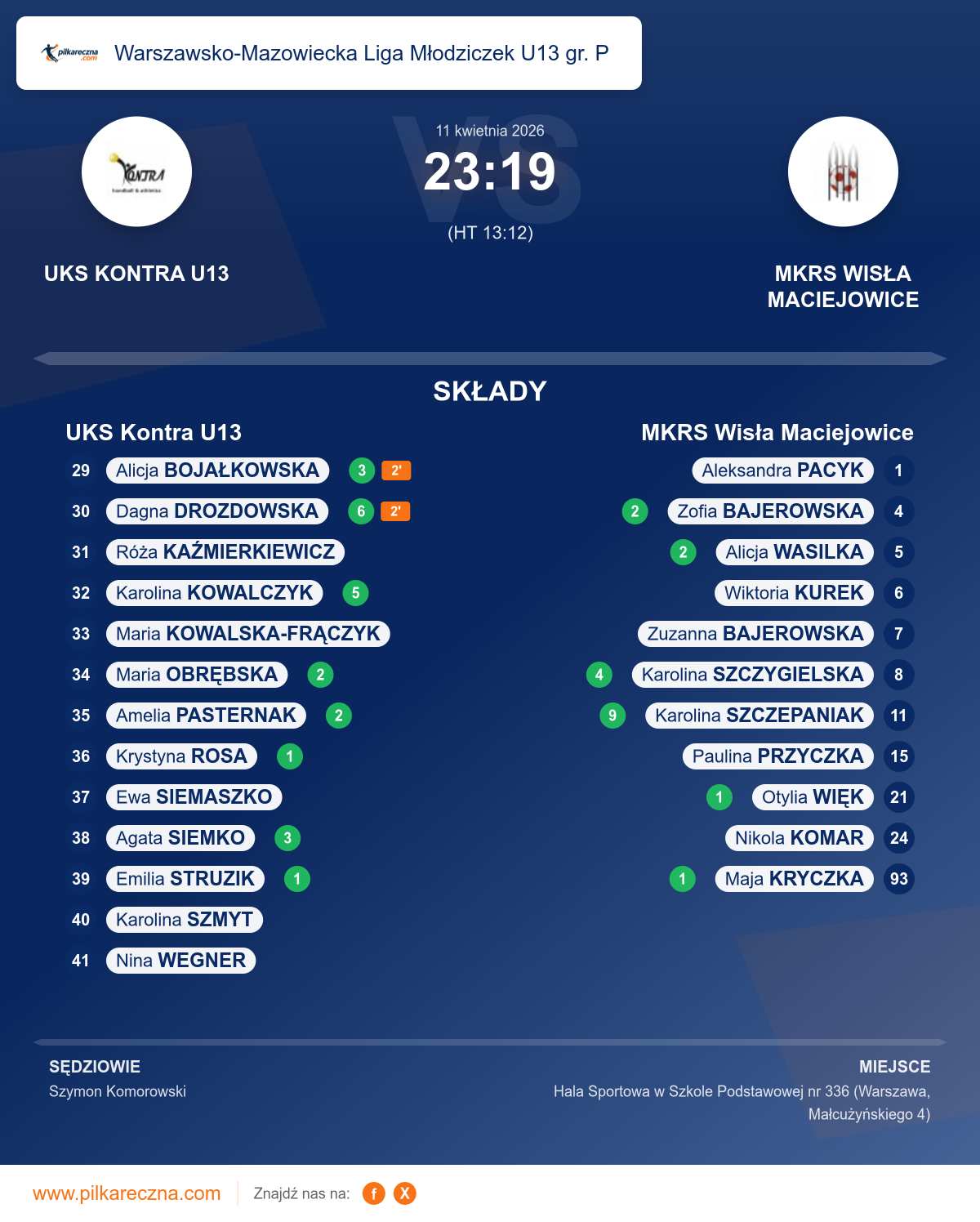 UKS Kontra U13 23–19 MKRS Wisła Maciejowice