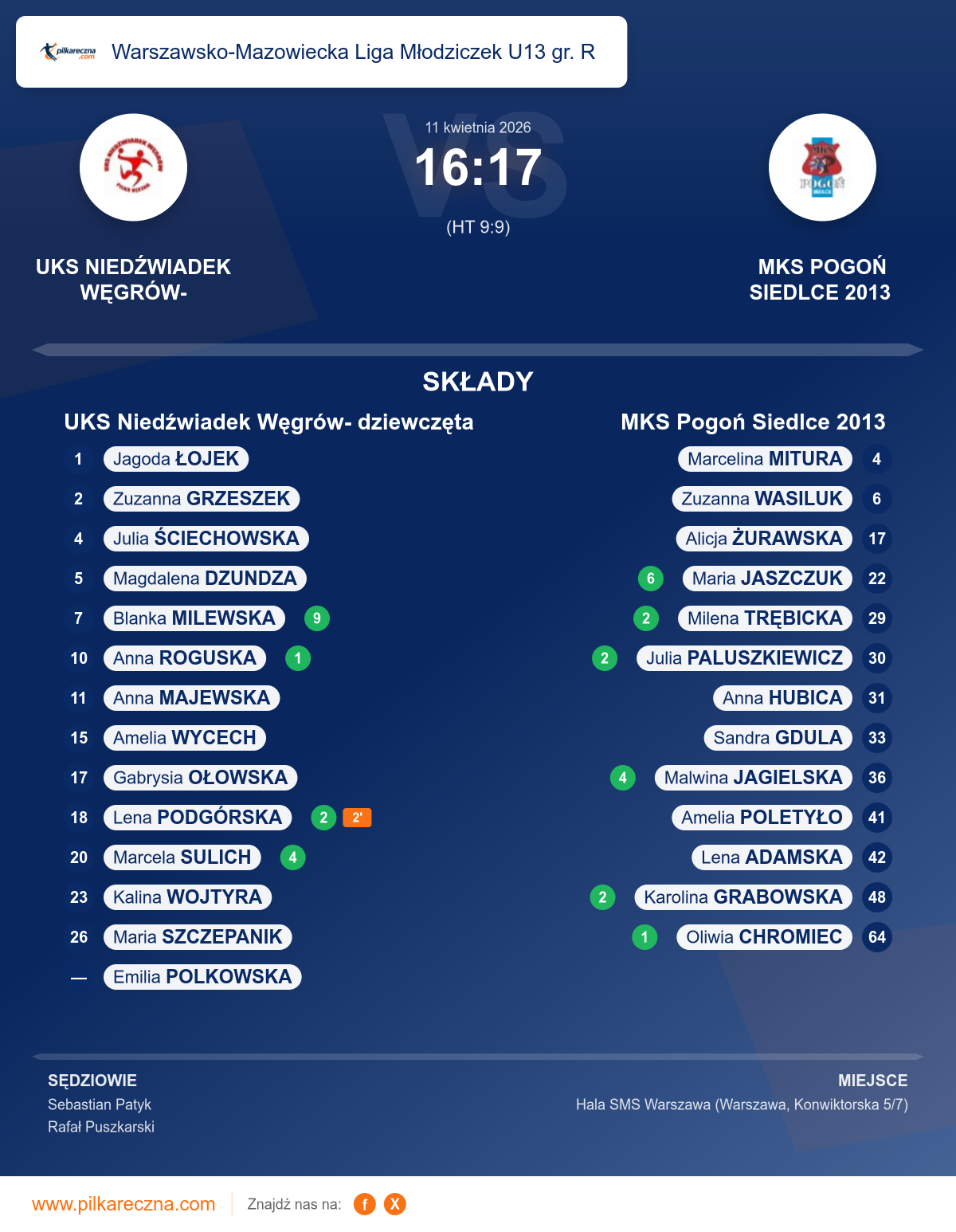 Wynik: 16–17 (HT 9–9)
