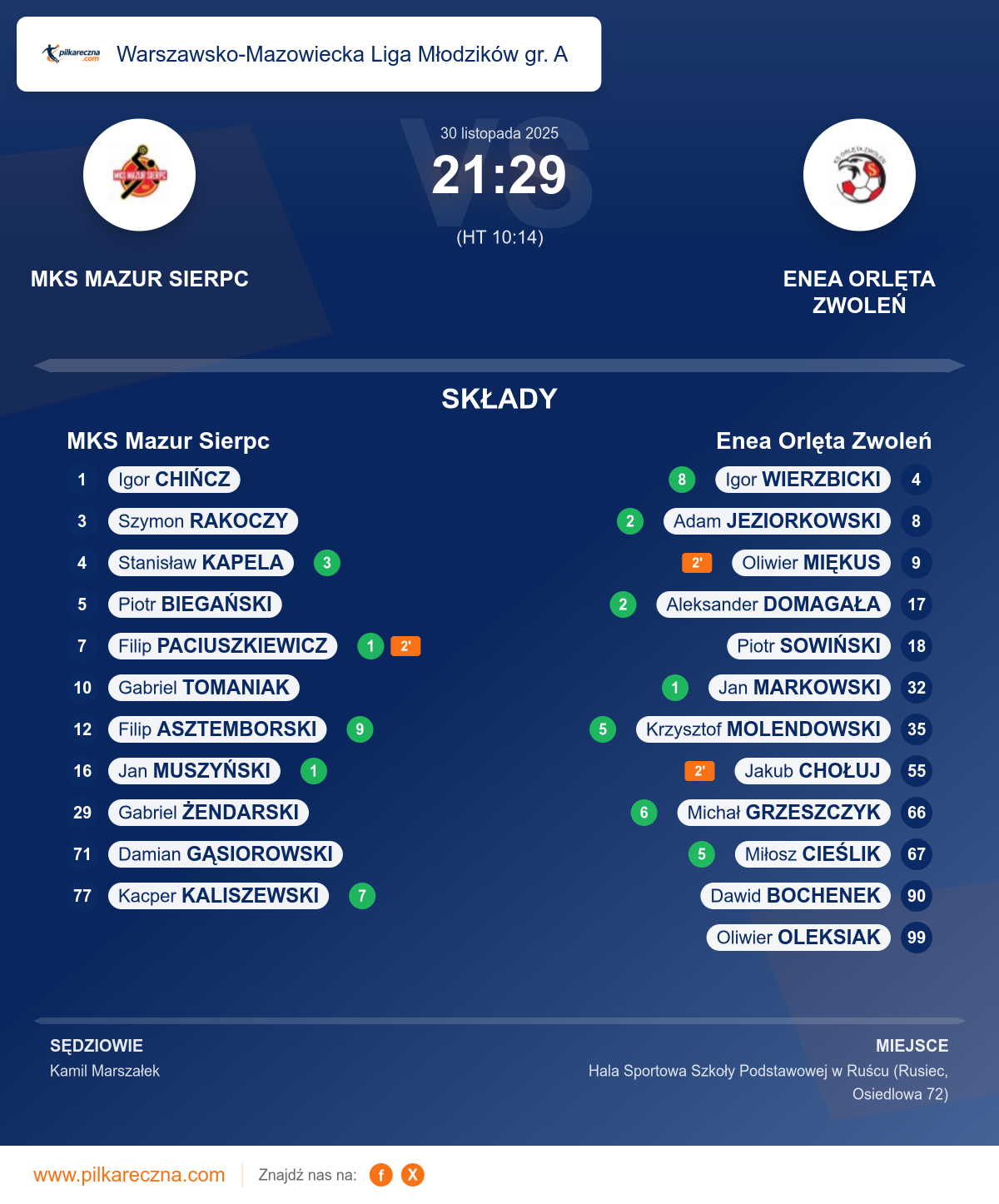 MKS Mazur Sierpc 21–29 Enea Orlęta Zwoleń
