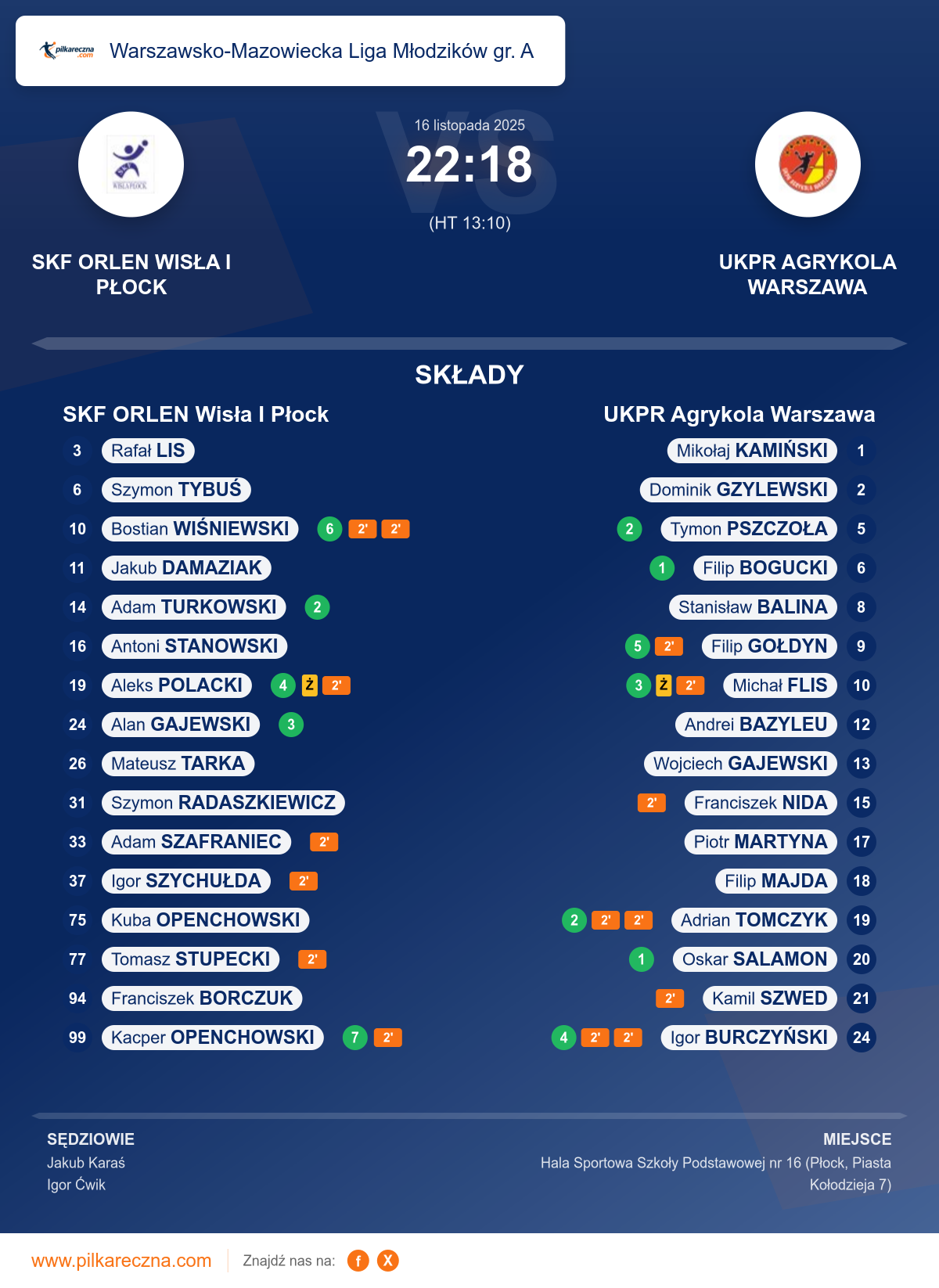 SKF ORLEN Wisła I Płock 22–18 UKPR Agrykola Warszawa