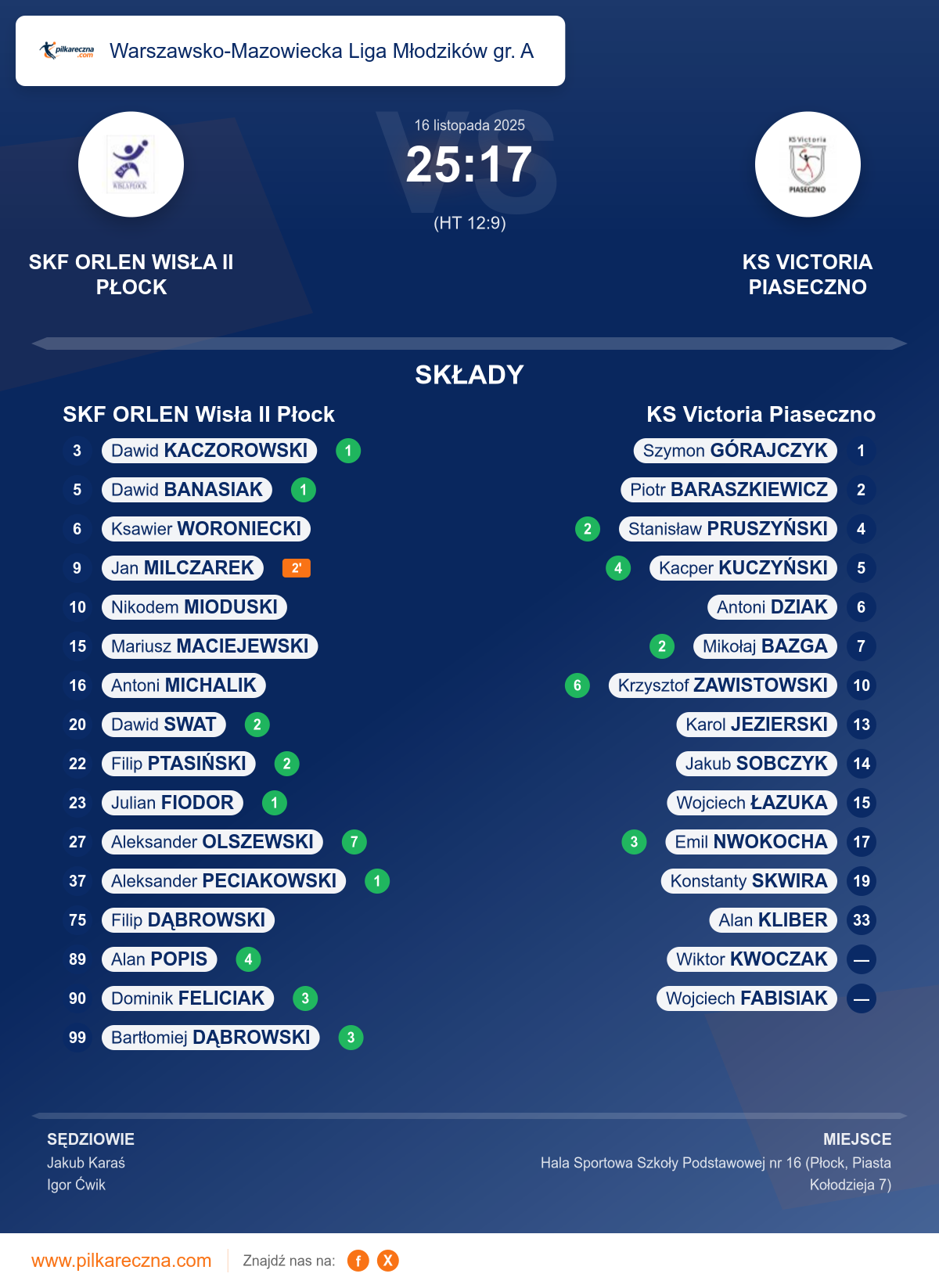 SKF ORLEN Wisła II Płock 25–17 KS Victoria Piaseczno