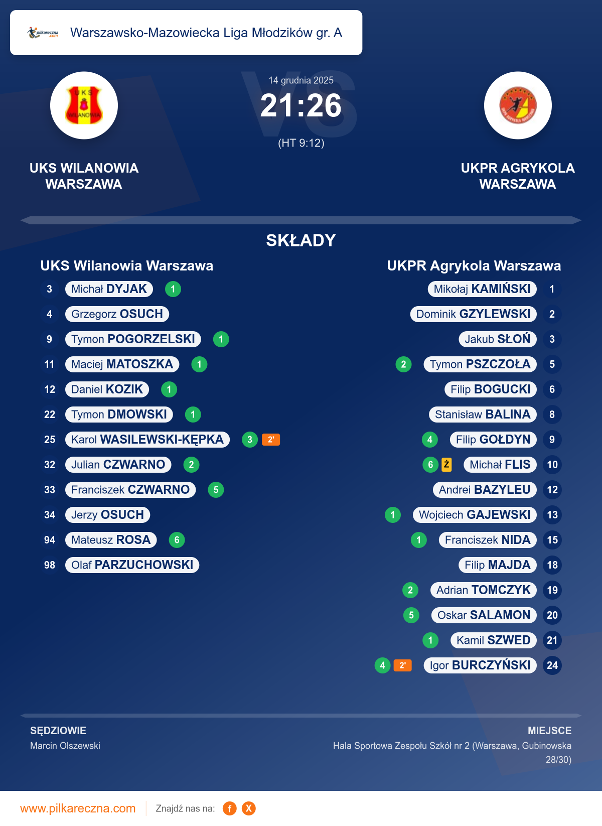 UKS Wilanowia Warszawa 21–26 UKPR Agrykola Warszawa