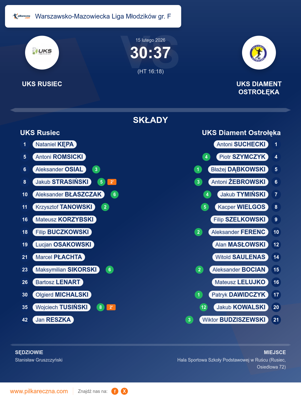 UKS Rusiec — UKS Diament Ostrołęka