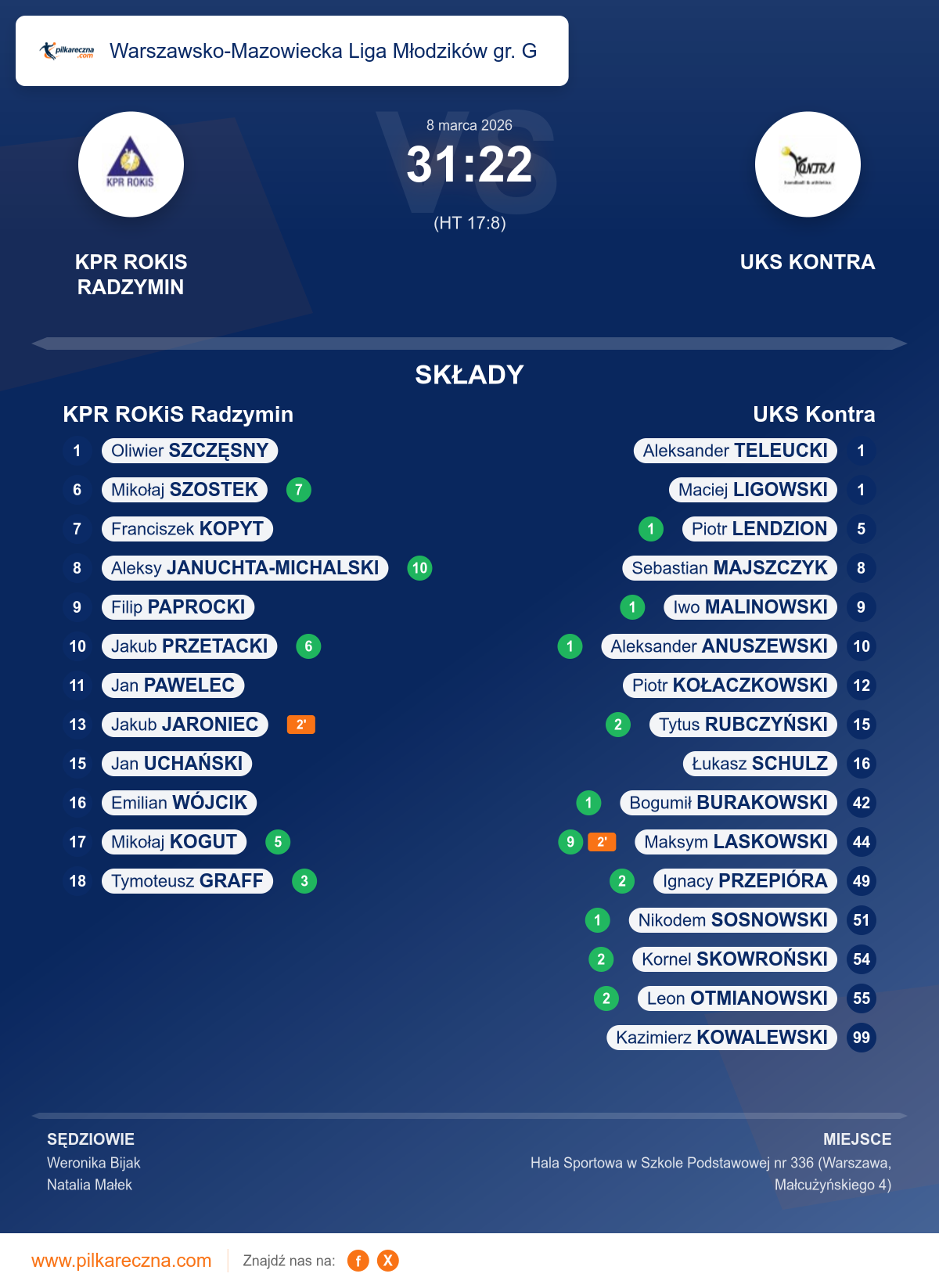 KPR ROKiS Radzymin 31–22 UKS Kontra