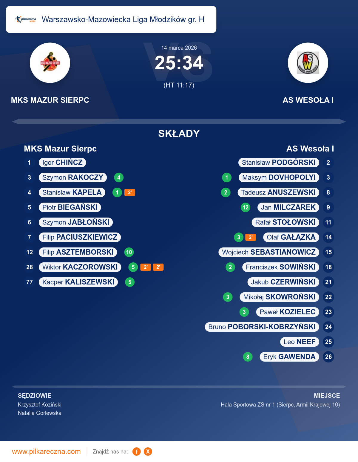 Zawodnicy: Filip Asztemborski (10), Kacper Kaliszewski (5), Wiktor Kaczorowski (5), Szymon Rakoczy (4), Stanisław Kapela (1), Filip Paciuszkiewicz, Piotr Biegański, Szymon Jabłoński