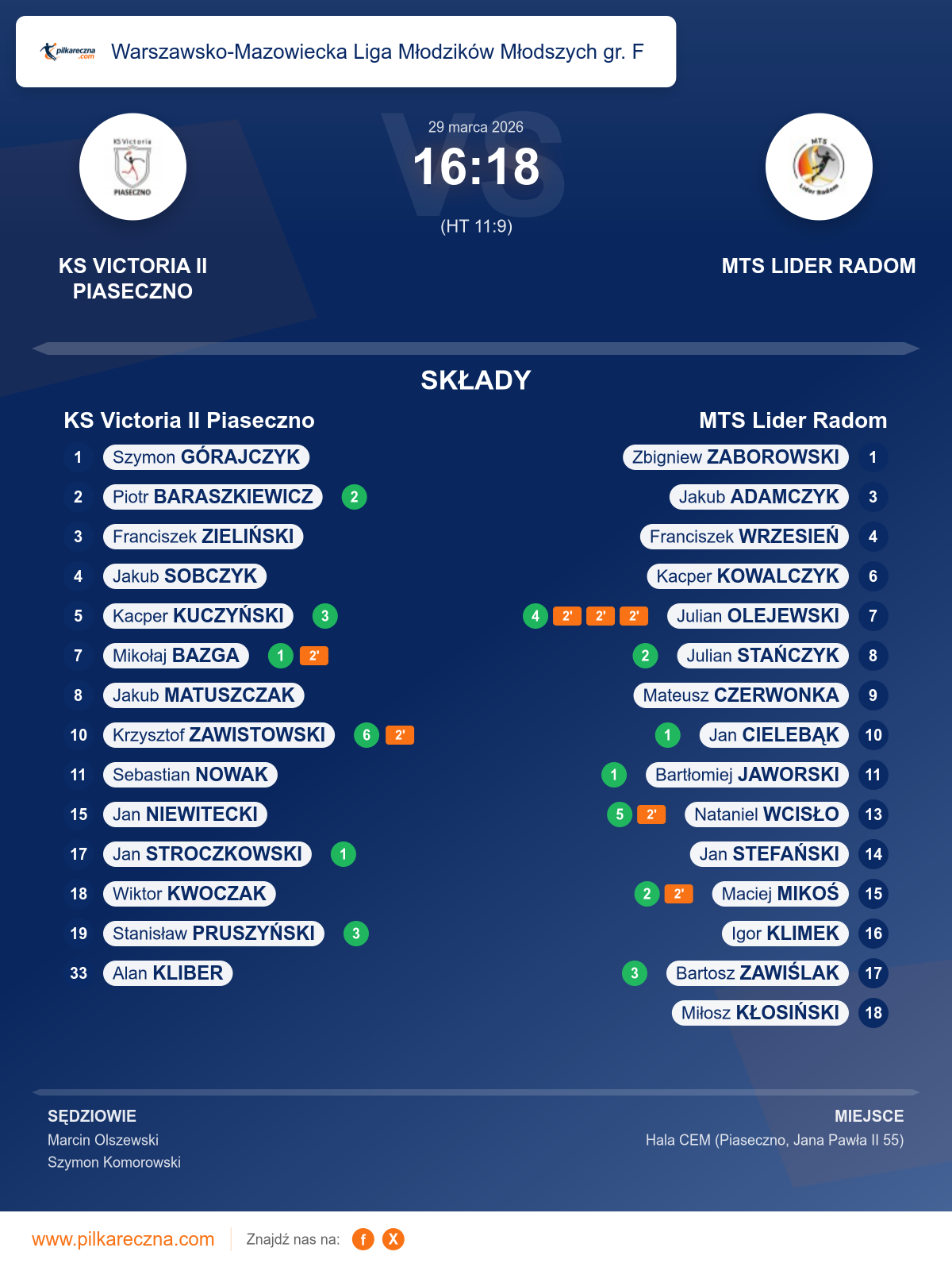 KS Victoria II Piaseczno 16–18 MTS Lider Radom