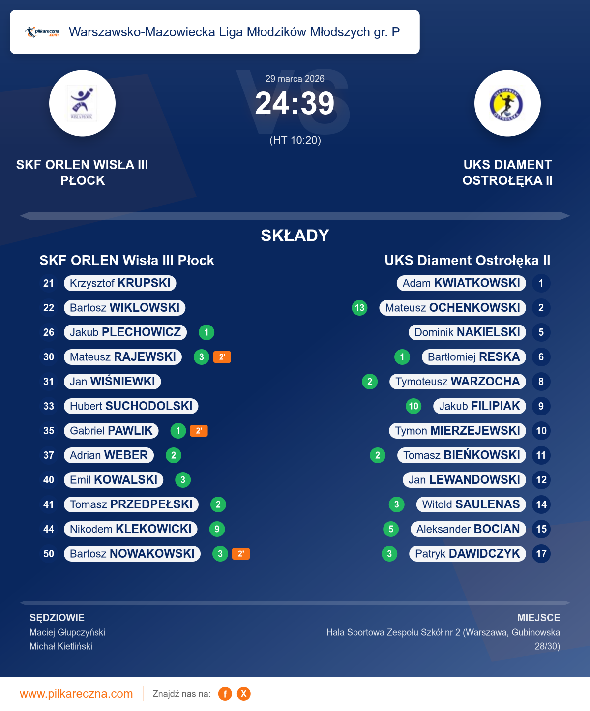 SKF ORLEN Wisła III Płock 24–39 UKS Diament Ostrołęka II