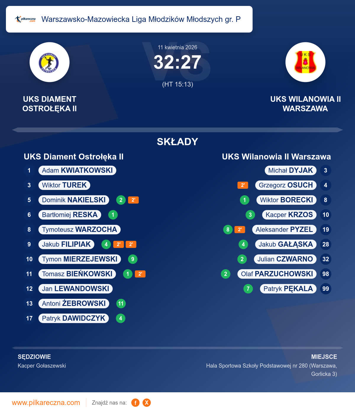 UKS Diament Ostrołęka II 32–27 UKS Wilanowia II Warszawa