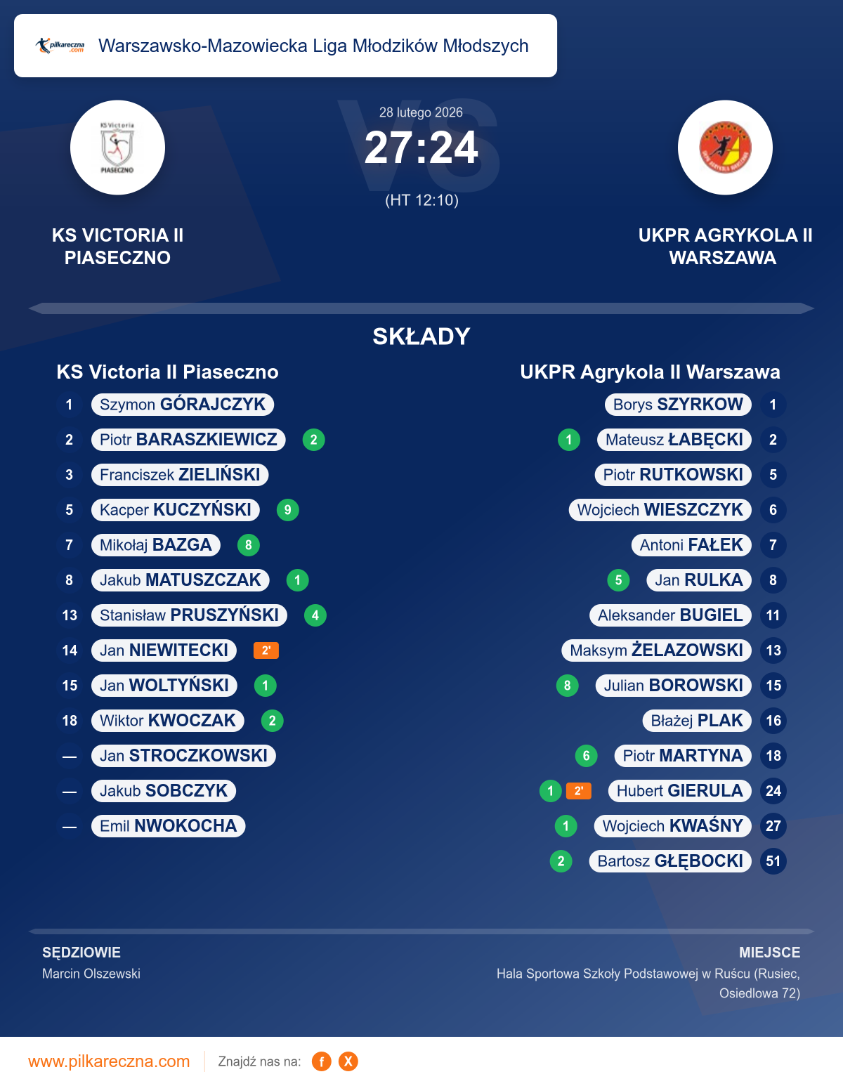 KS Victoria II Piaseczno 27–24 UKPR Agrykola II Warszawa