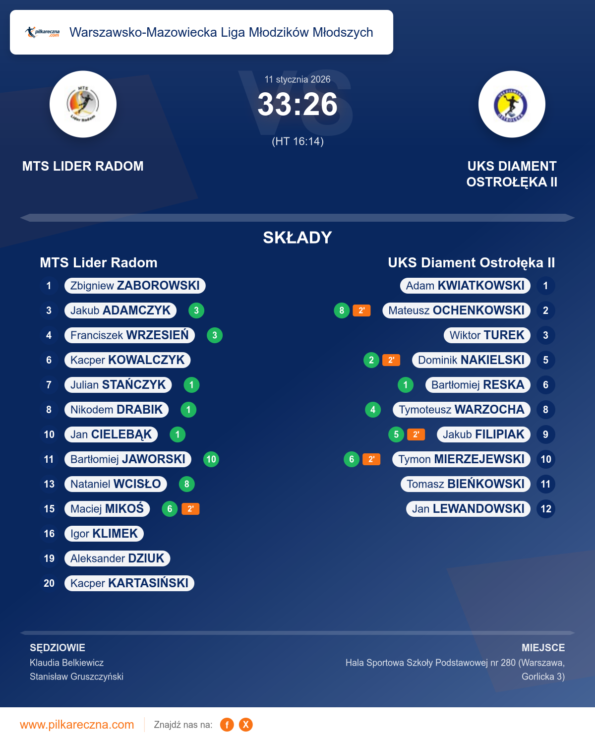 MTS Lider Radom 33–26 UKS Diament Ostrołęka II