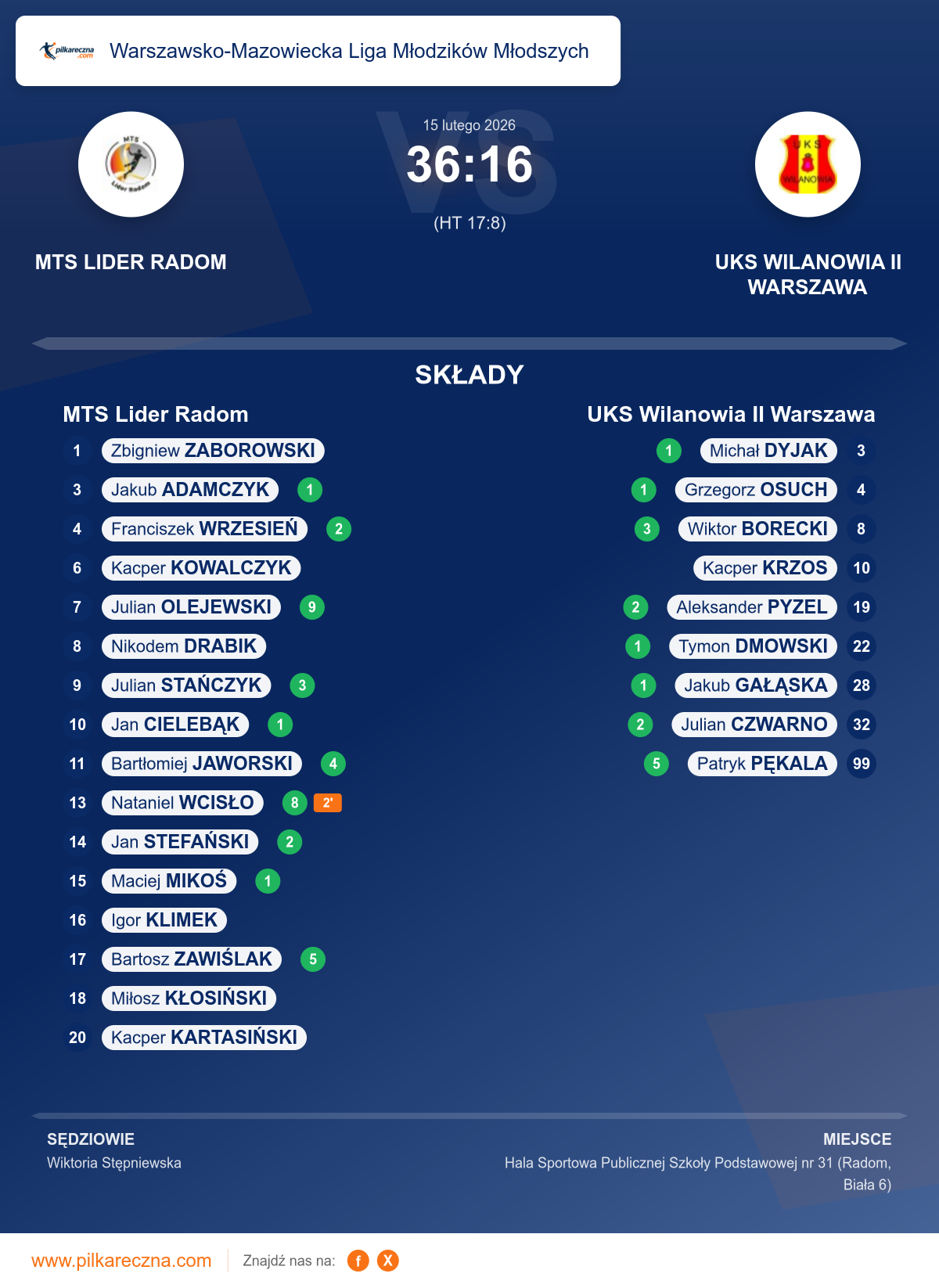 MTS Lider Radom 36–16 UKS Wilanowia II Warszawa