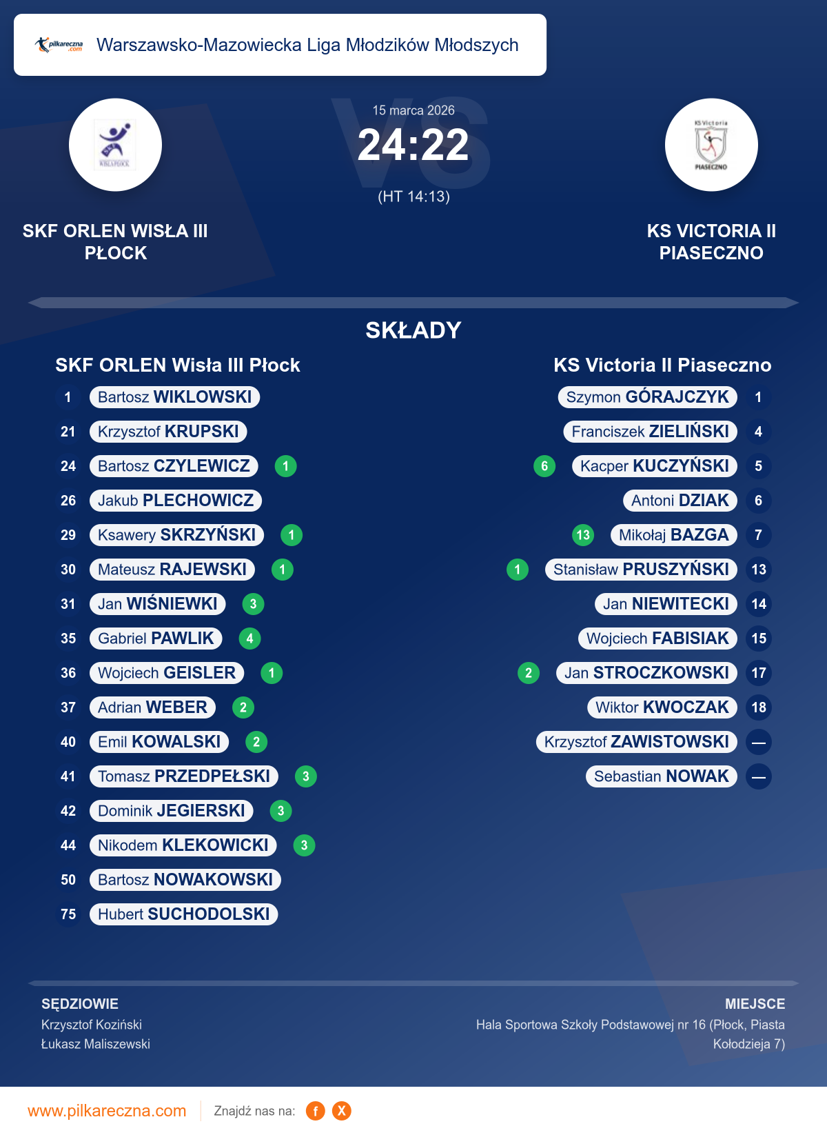 SKF ORLEN Wisła III Płock 24–22 KS Victoria II Piaseczno