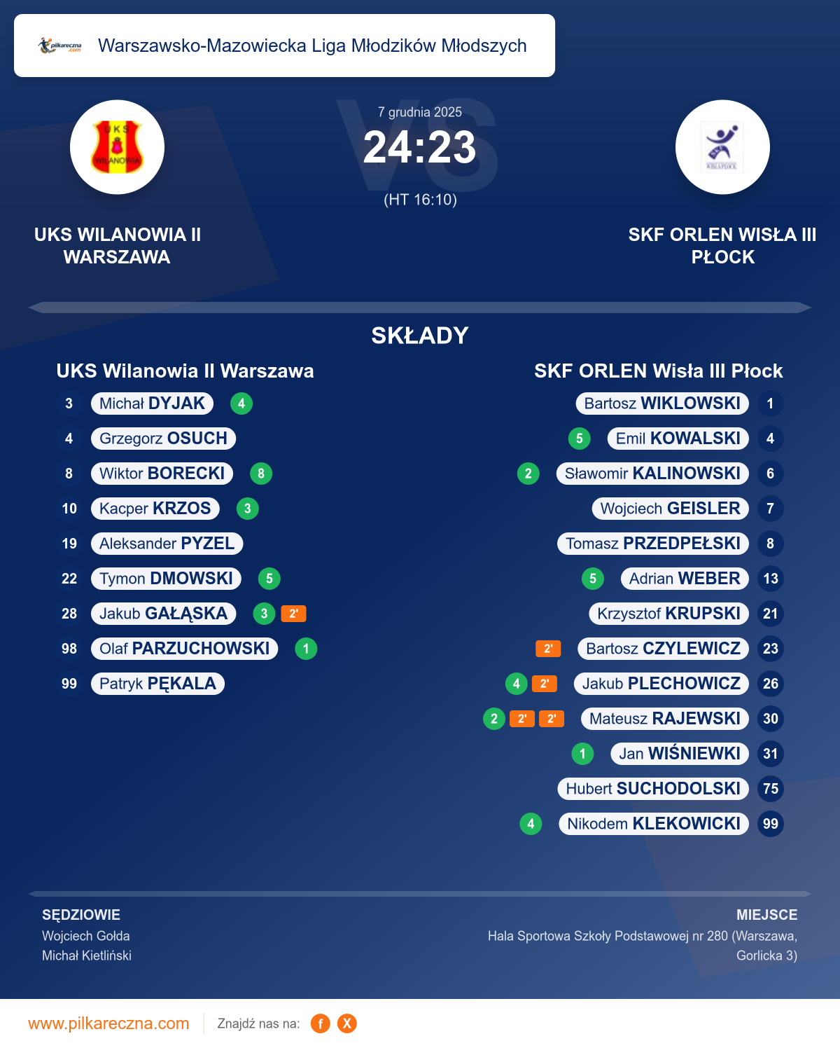 UKS Wilanowia II Warszawa 24–23 SKF ORLEN Wisła III Płock
