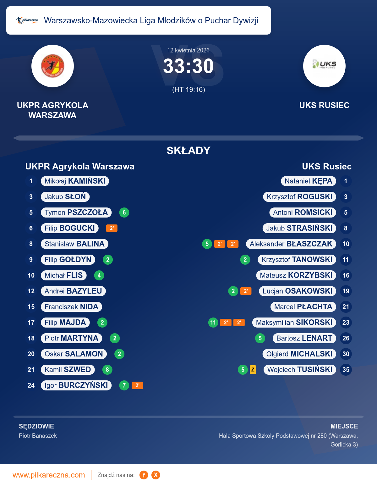 UKPR Agrykola Warszawa 33–30 UKS Rusiec