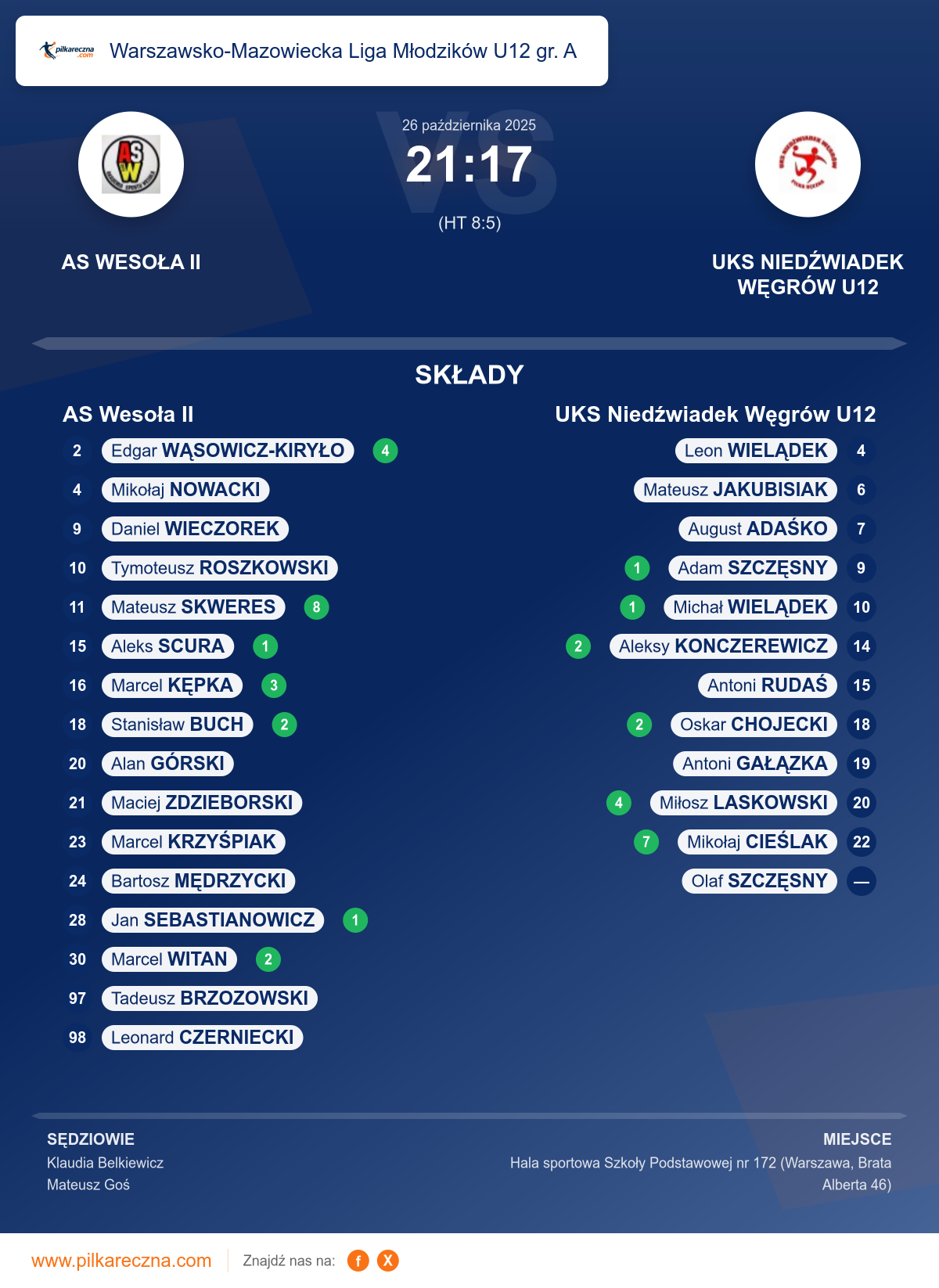 AS Wesoła II 21–17 UKS Niedźwiadek Węgrów U12