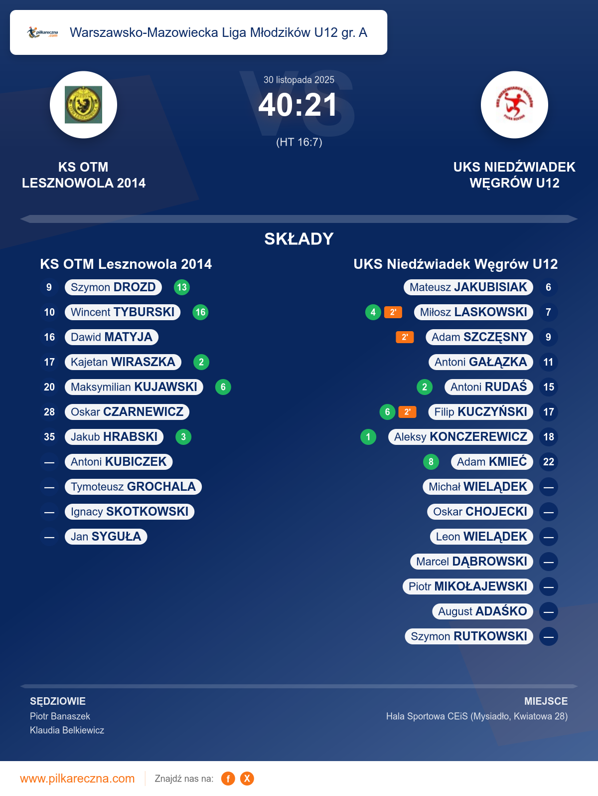 KS OTM Lesznowola 2014 40–21 UKS Niedźwiadek Węgrów U12