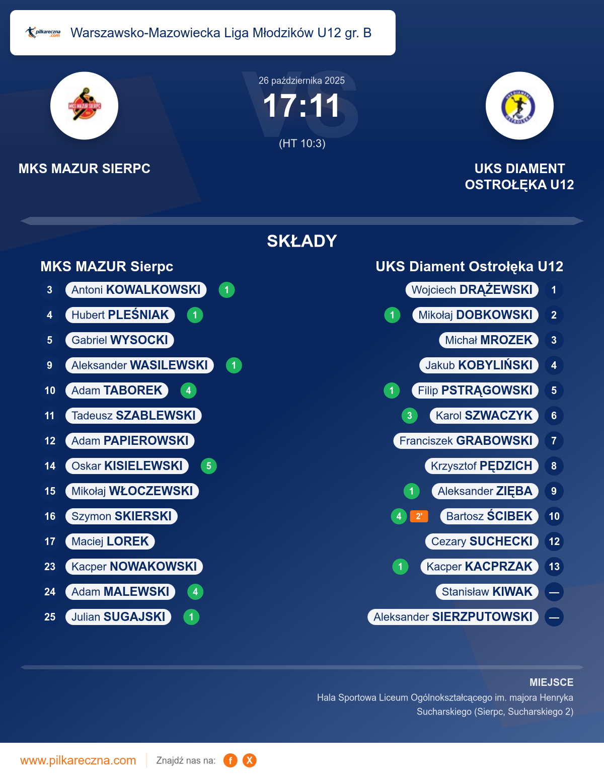 MKS MAZUR Sierpc — UKS Diament Ostrołęka U12
