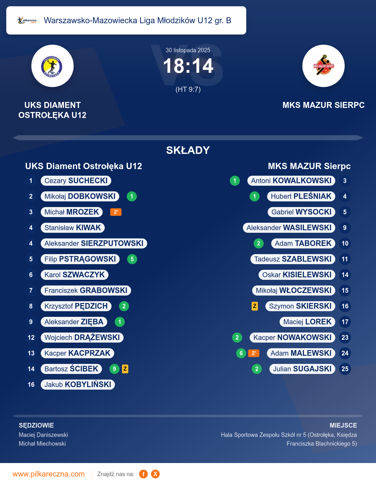 UKS Diament Ostrołęka U12 18–14 MKS MAZUR Sierpc