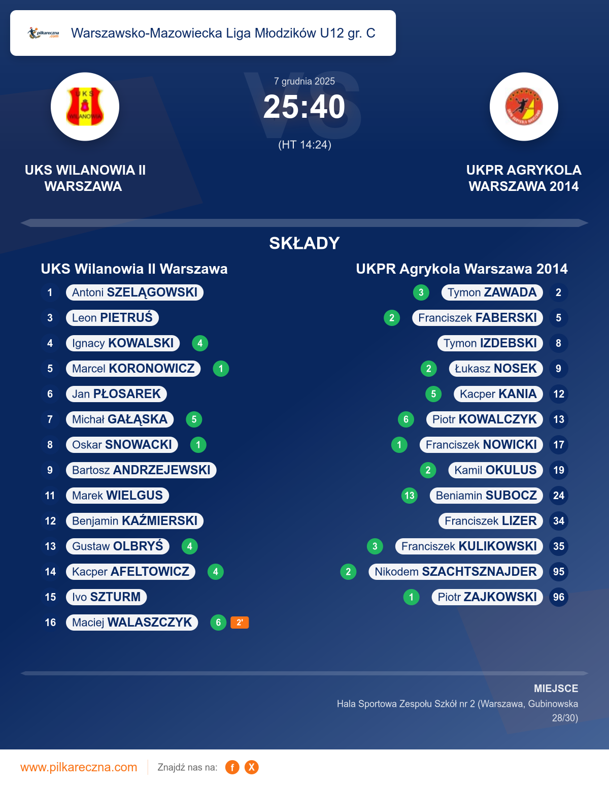 UKS Wilanowia II Warszawa 25–40 UKPR Agrykola Warszawa 2014