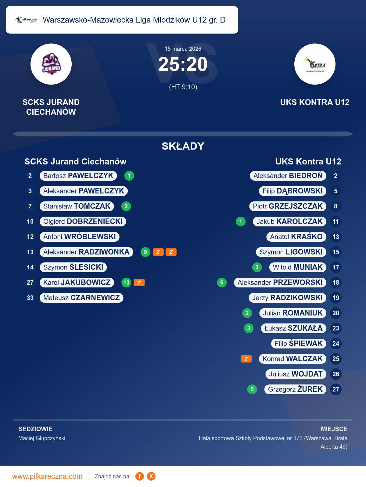 SCKS Jurand Ciechanów 25–20 UKS Kontra U12