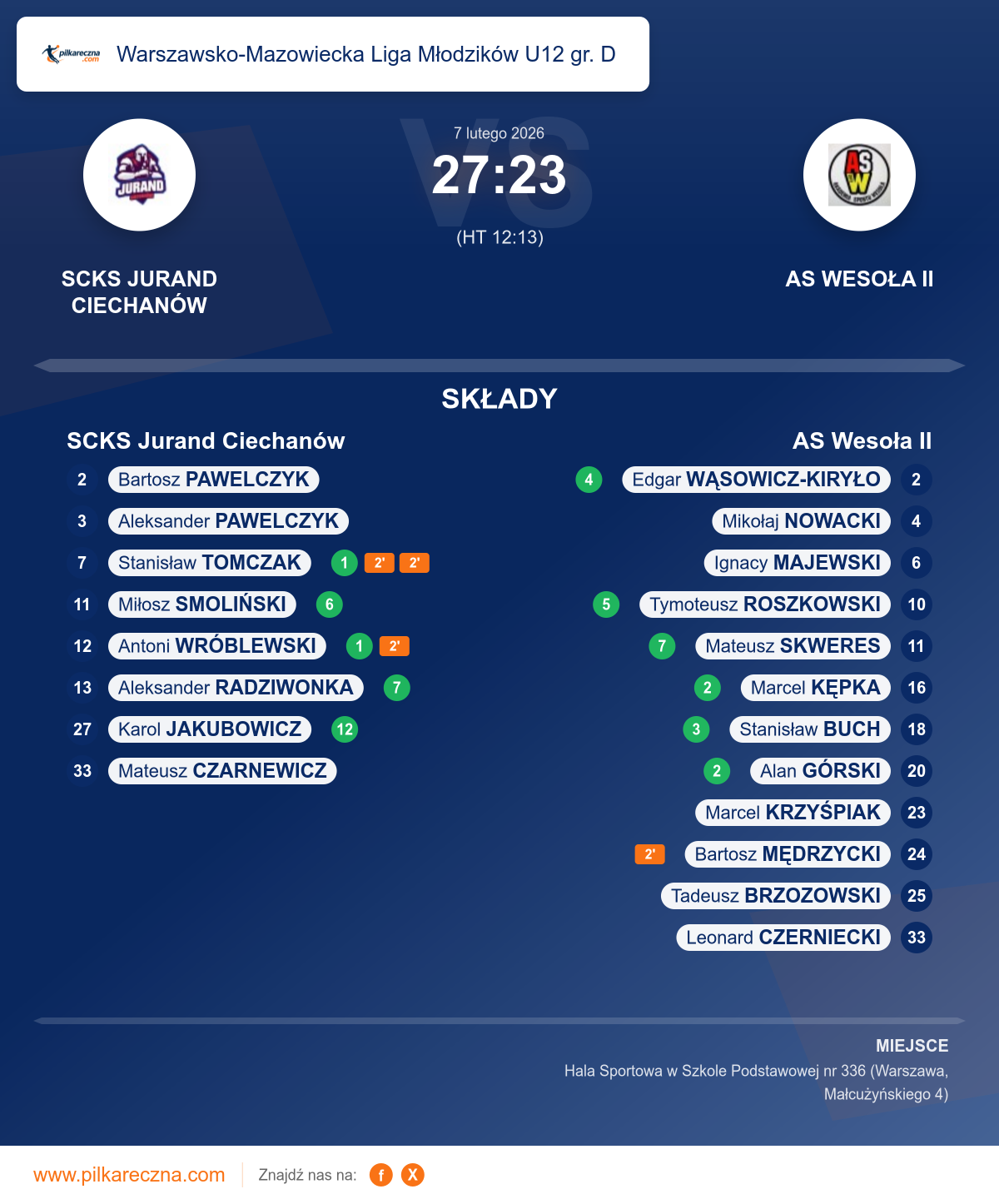 SCKS Jurand Ciechanów 27–23 AS Wesoła II