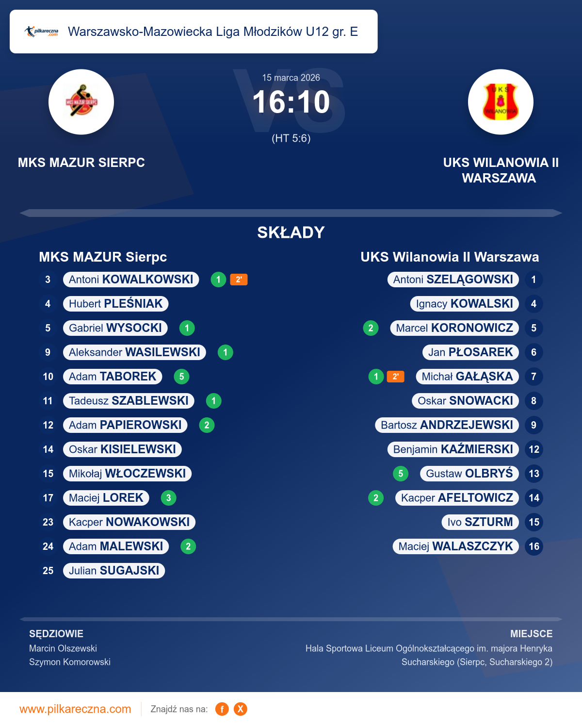 MKS MAZUR Sierpc — UKS Wilanowia II Warszawa