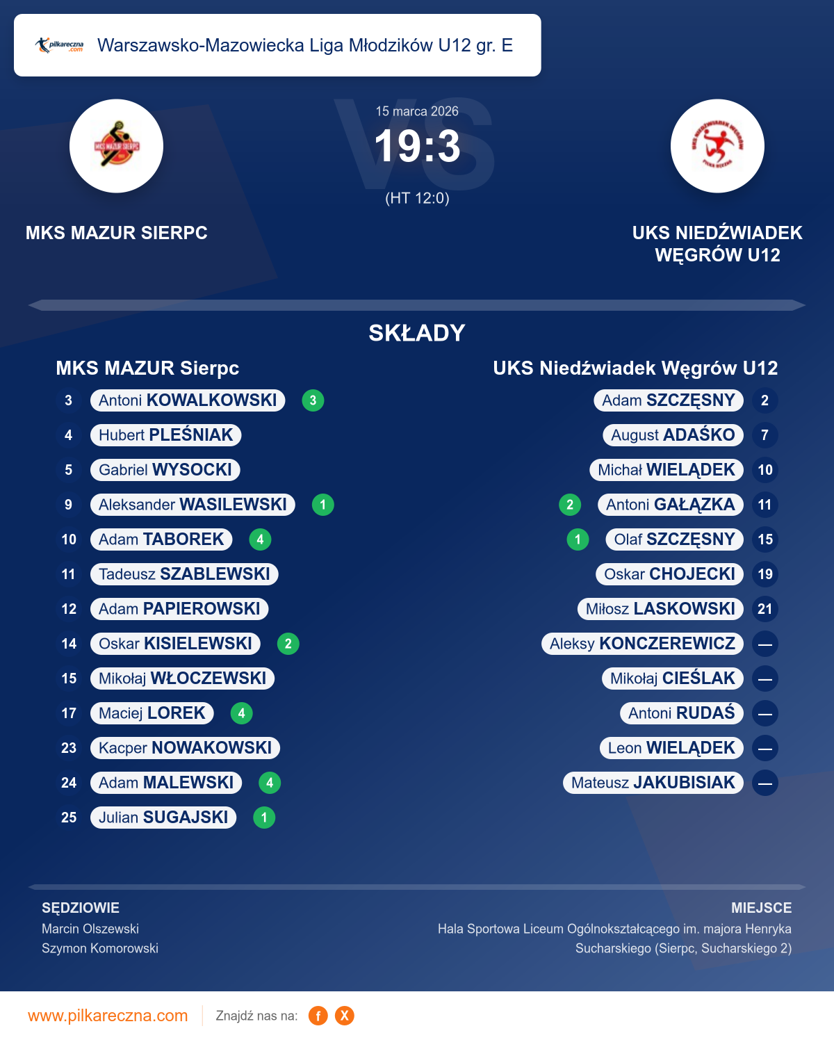MKS MAZUR Sierpc 19–3 UKS Niedźwiadek Węgrów U12