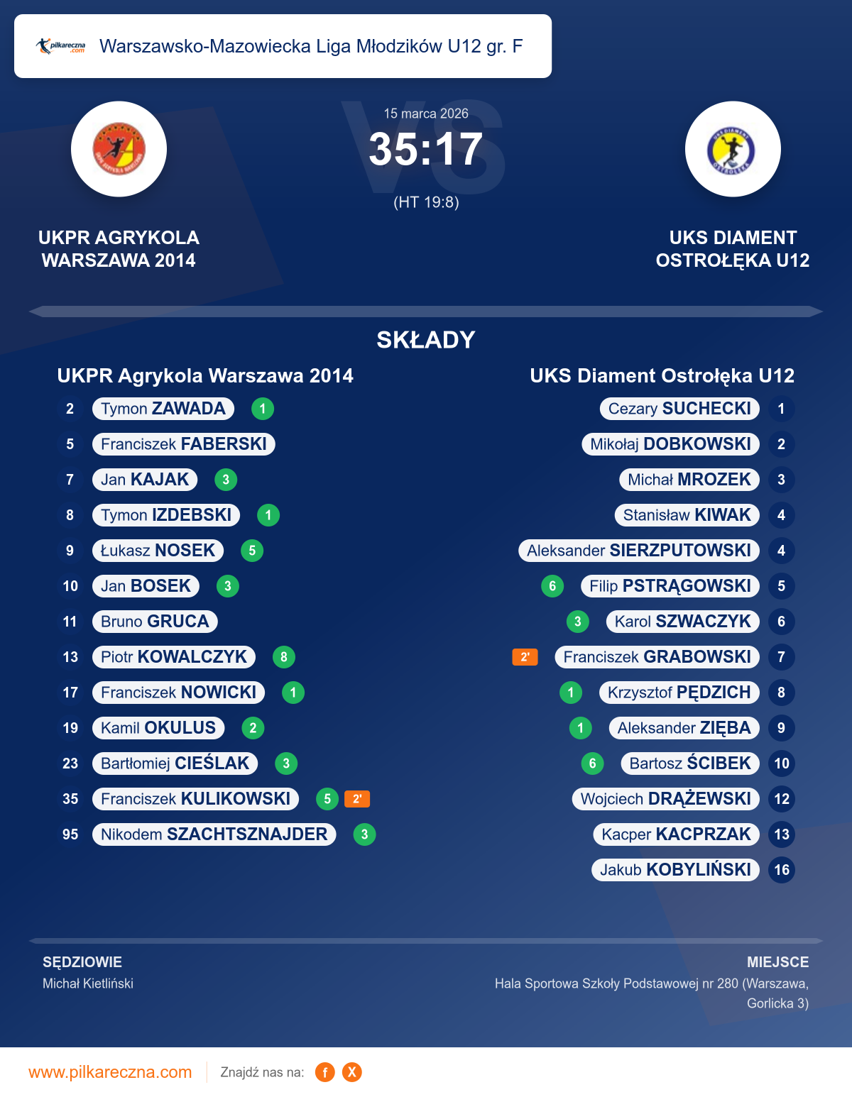 UKPR Agrykola Warszawa 2014 35–17 UKS Diament Ostrołęka U12