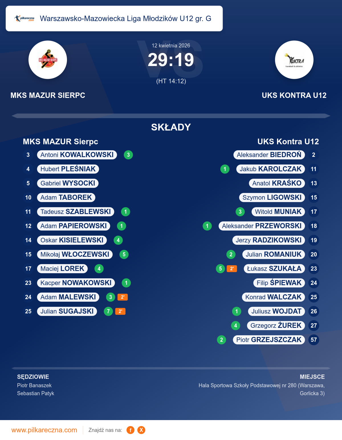 MKS MAZUR Sierpc 29–19 UKS Kontra U12