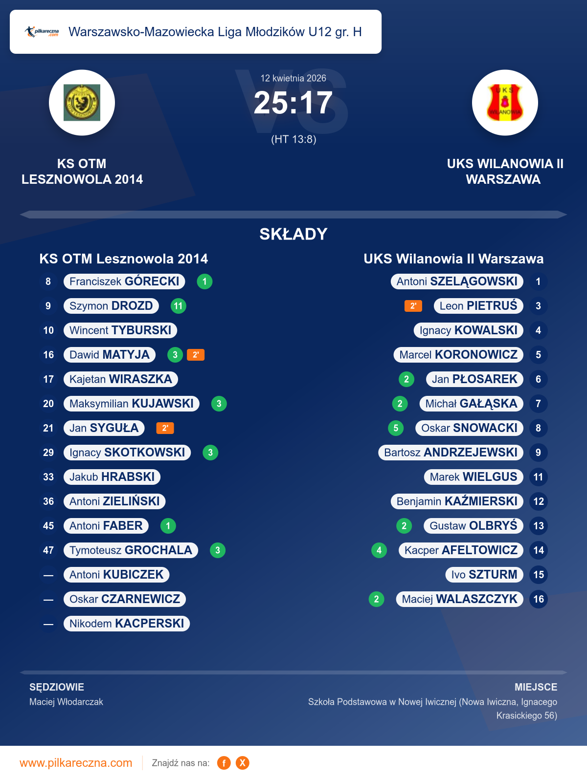 KS OTM Lesznowola 2014 25–17 UKS Wilanowia II Warszawa