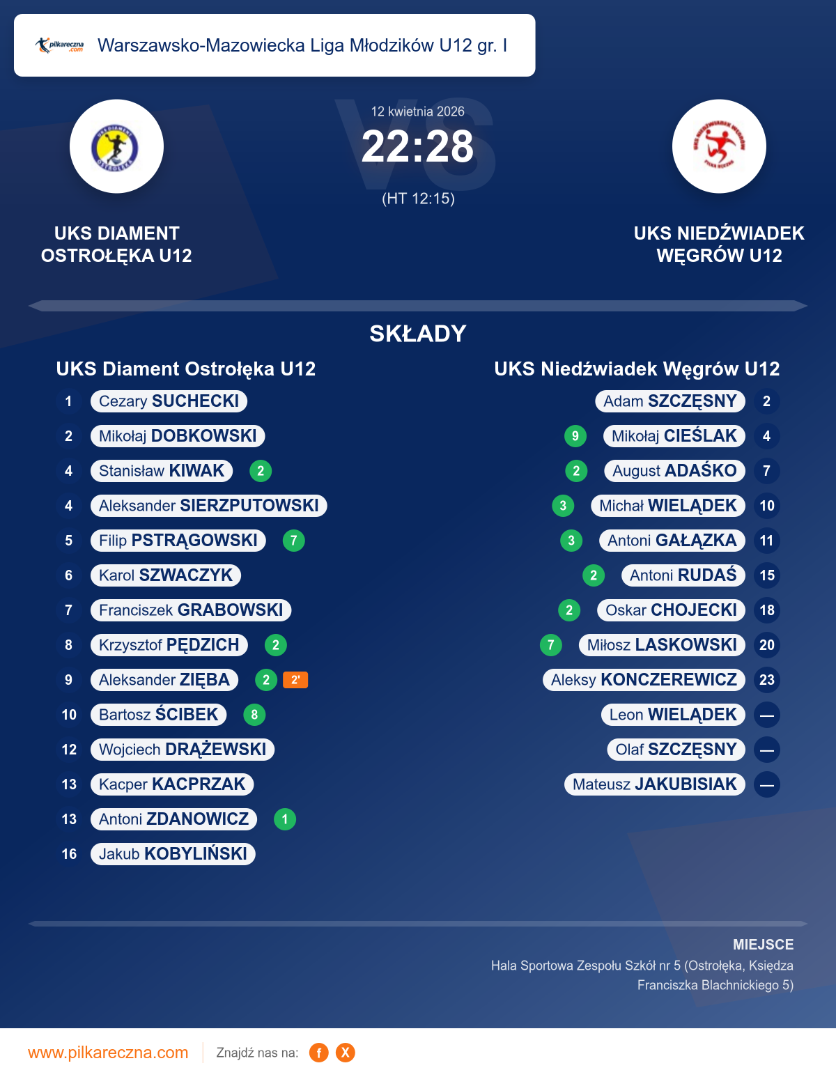 UKS Diament Ostrołęka U12 — UKS Niedźwiadek Węgrów U12