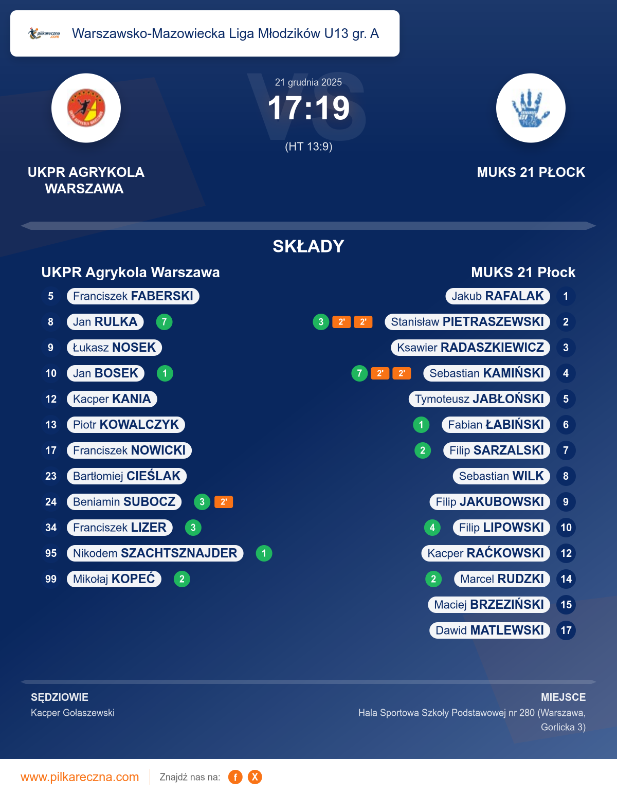 Wynik: 17–19 (HT 13–9)