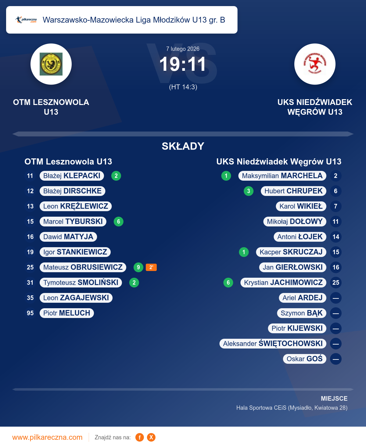 OTM Lesznowola U13 — UKS Niedźwiadek Węgrów U13