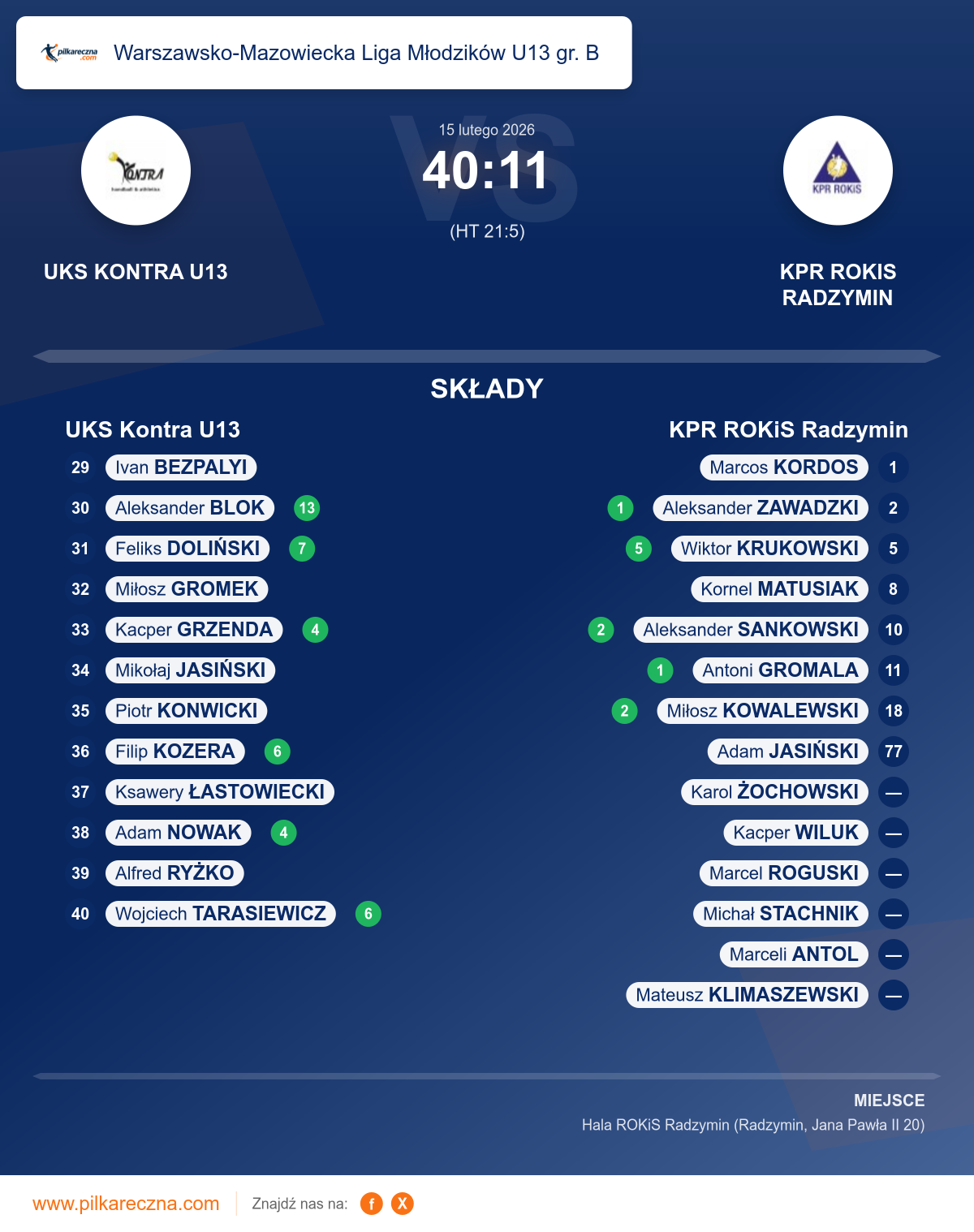 UKS Kontra U13 — KPR ROKiS Radzymin