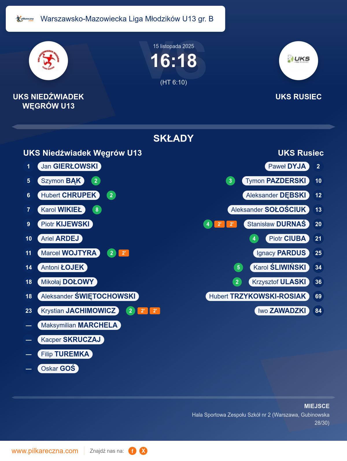 Hala: Hala Sportowa Zespołu Szkół nr 2 (Warszawa, Gubinowska 28/30)