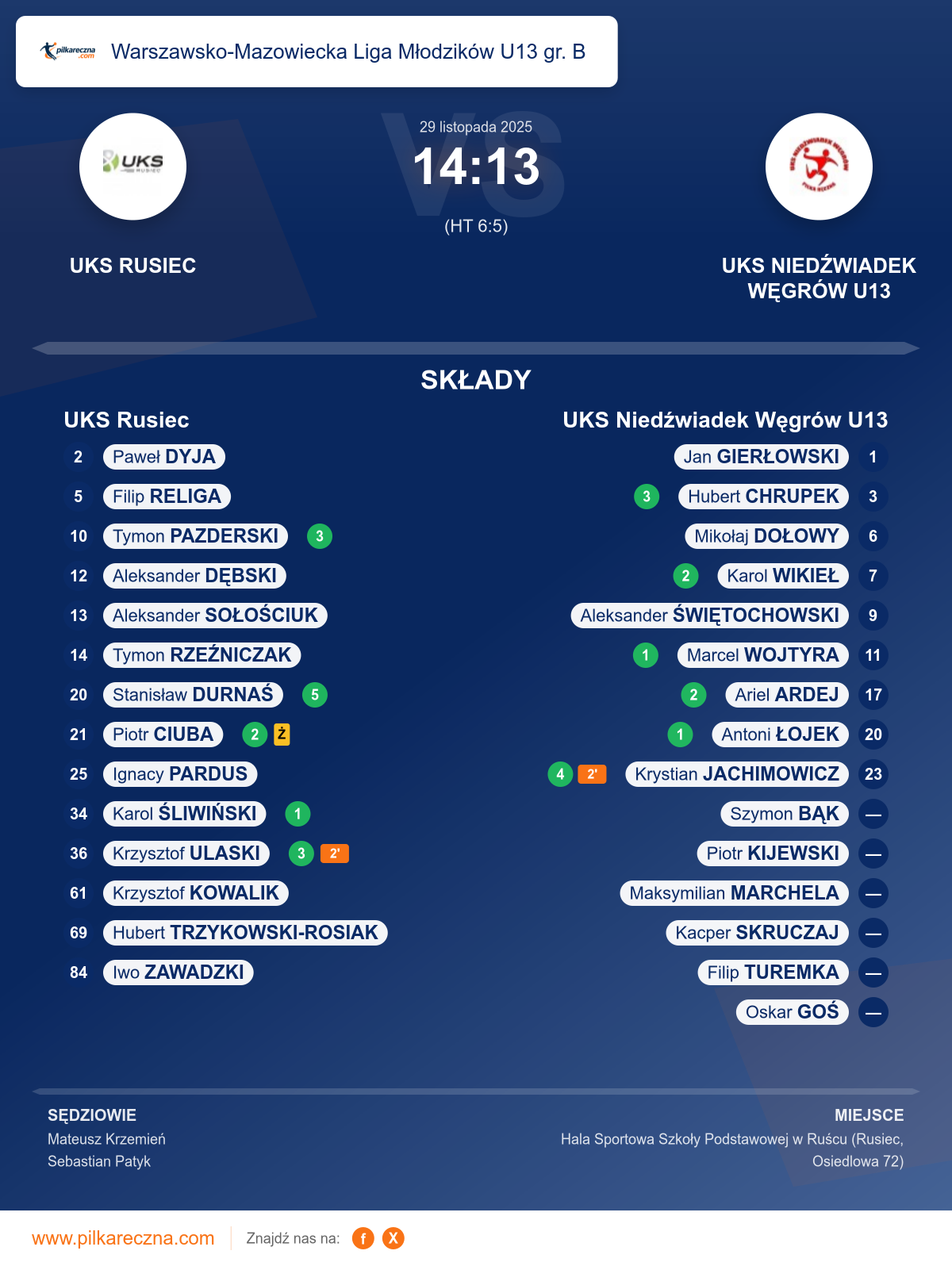 UKS Rusiec 14–13 UKS Niedźwiadek Węgrów U13