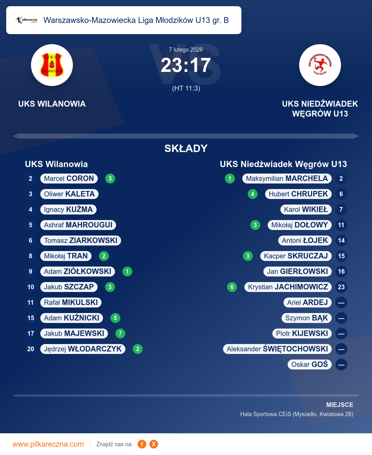 UKS Wilanowia — UKS Niedźwiadek Węgrów U13