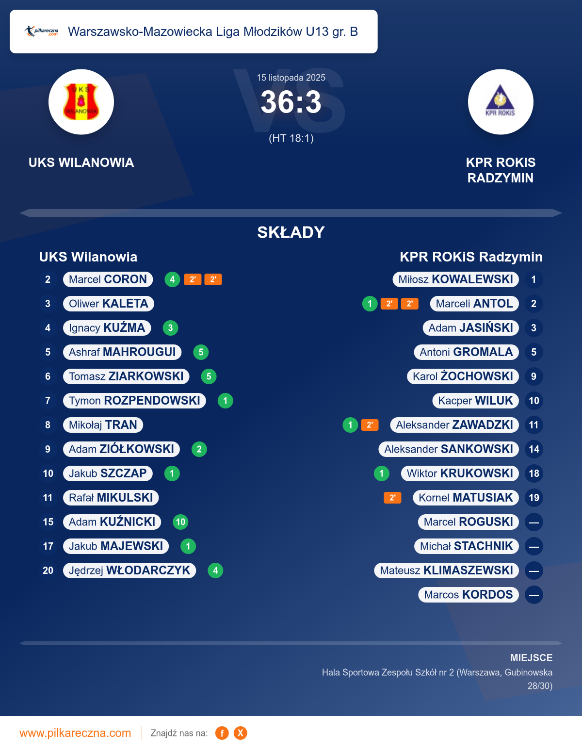 UKS Wilanowia 36–3 KPR ROKiS Radzymin