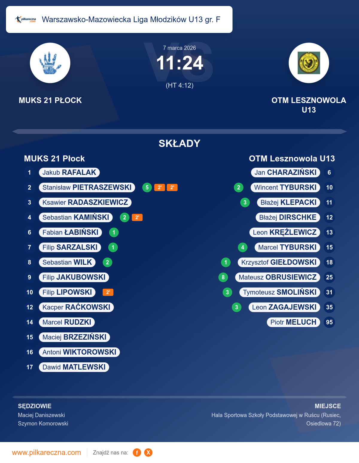 MUKS 21 Płock 11–24 OTM Lesznowola U13