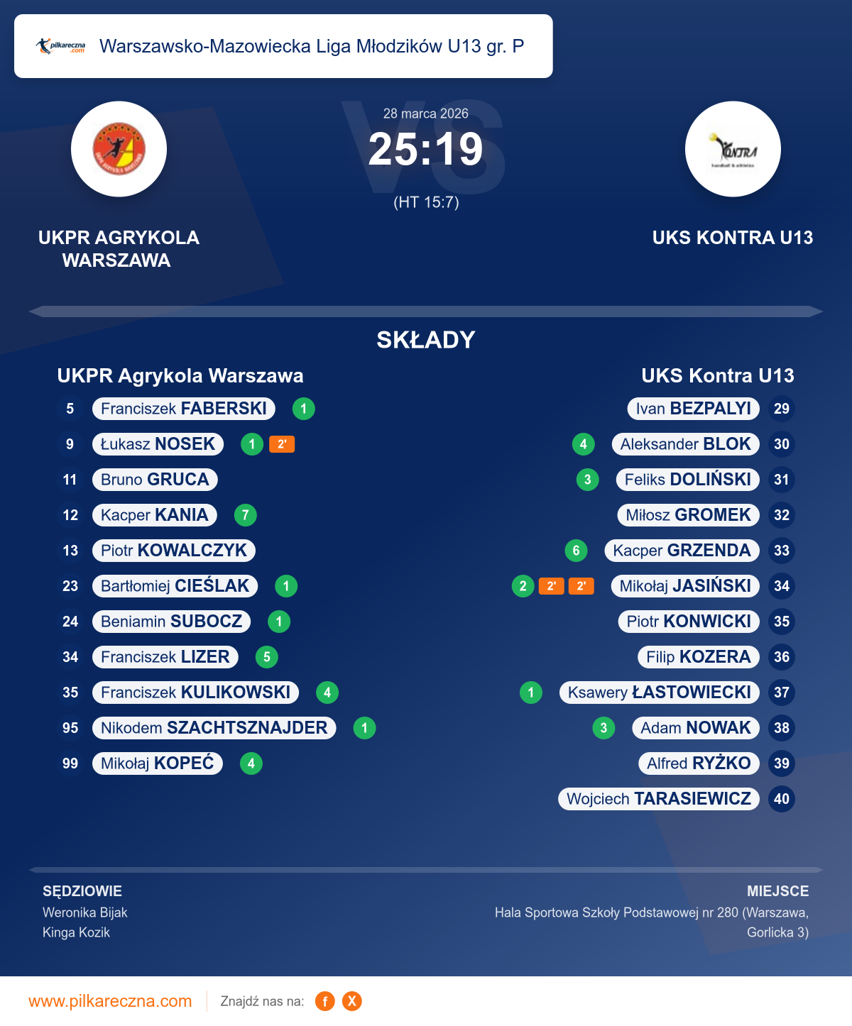 UKPR Agrykola Warszawa 25–19 UKS Kontra U13